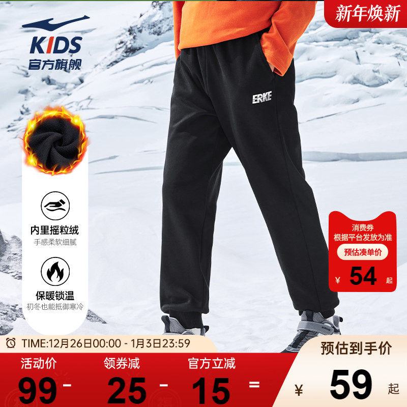 鸿星尔克童装男童卫裤儿童运动裤秋冬新款保暖长裤休闲裤加绒裤子