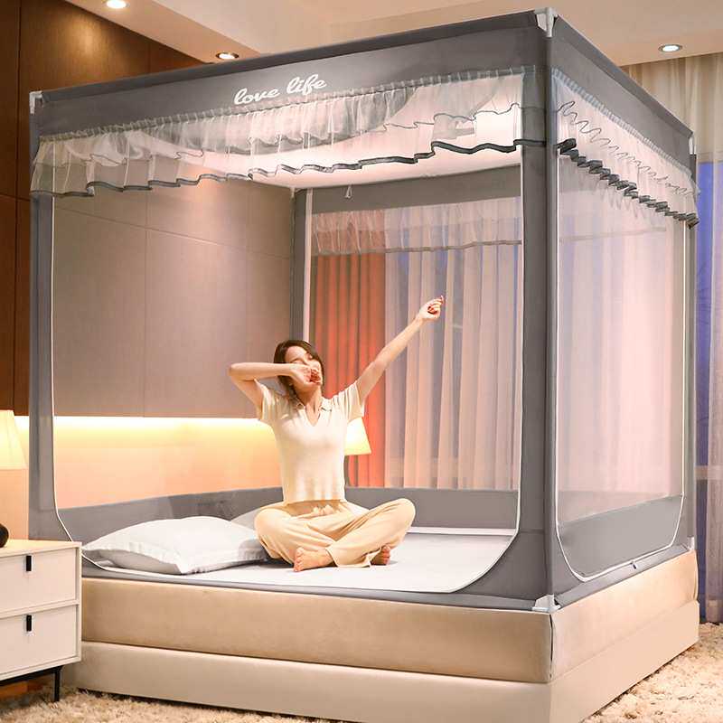 夏季蚊帐三开门高端外穿杆坐床式蚊帐儿童防摔家用方形帐厂家