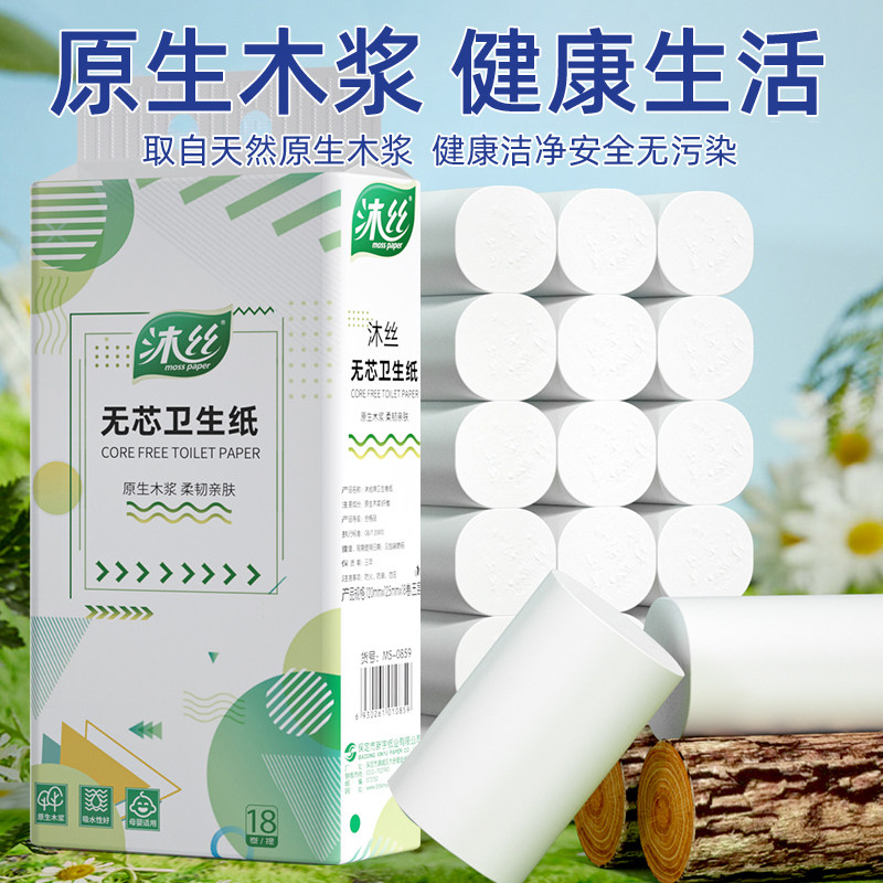 沐丝10斤卷纸卫生纸家用实惠装无芯卷筒纸5层加厚餐巾纸厕所厕纸