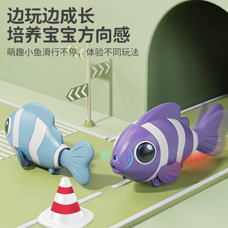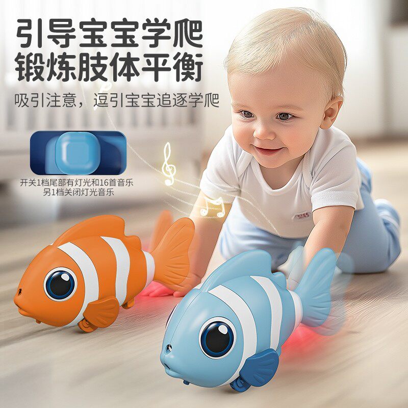 小鱼追视玩具电动感应仿真鱼会动的自动0-1岁引导学爬行小丑鱼