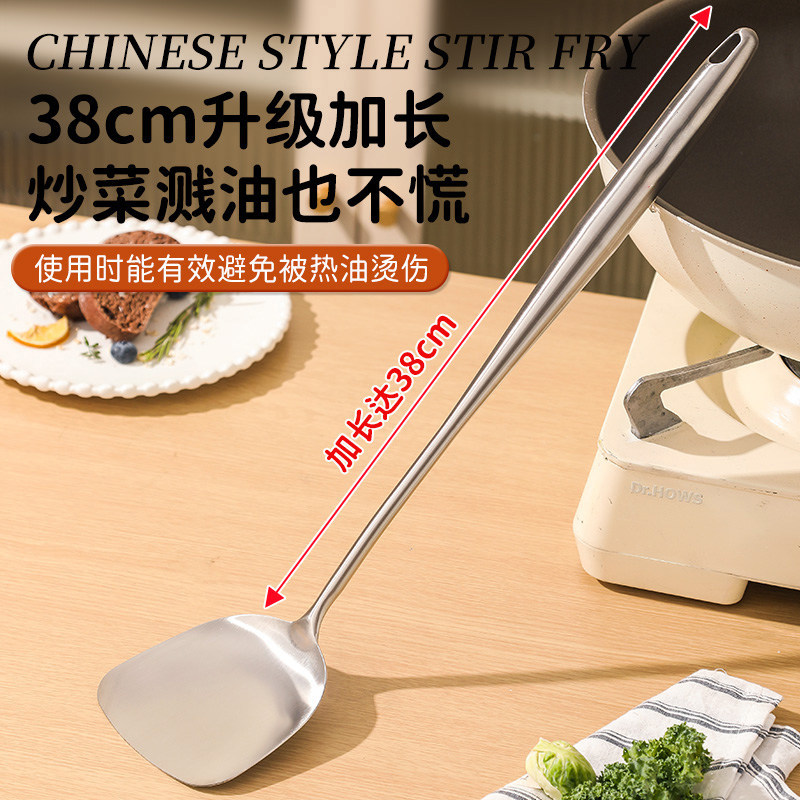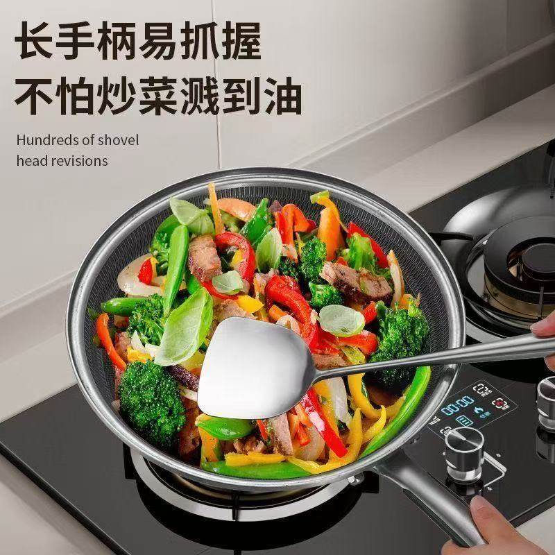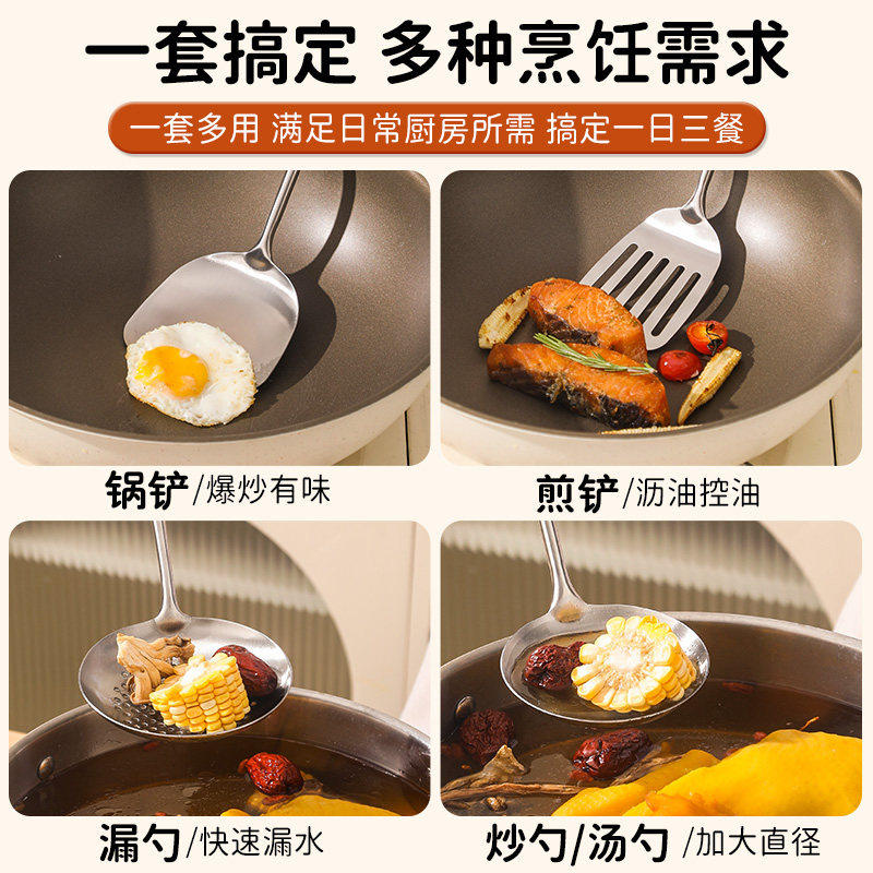 加厚不锈钢锅铲家用厨房手柄厨具炒铲套装全钢柄长柄加长防烫铲子