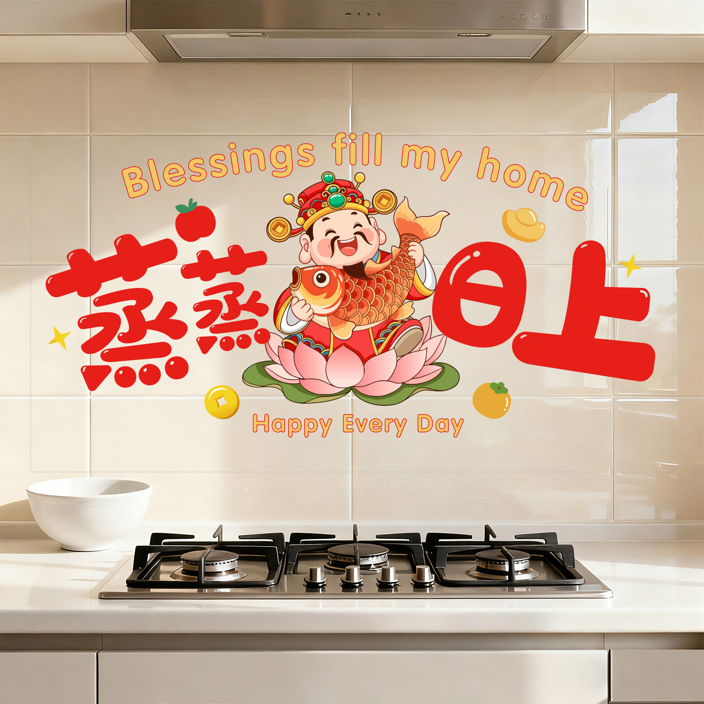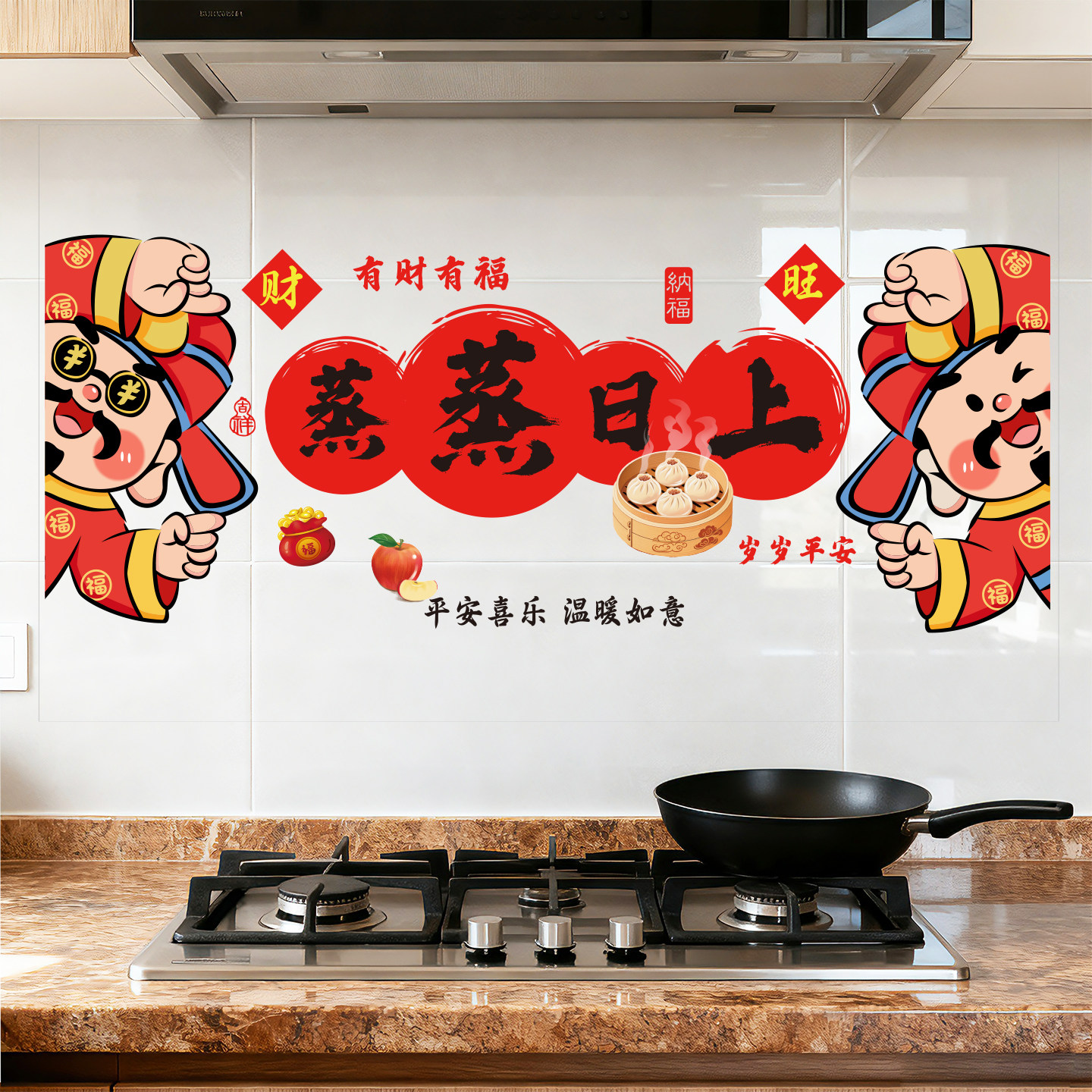 2026新款厨房防油贴纸耐高温灶台油烟机蒸蒸日上乔迁之喜新年装饰