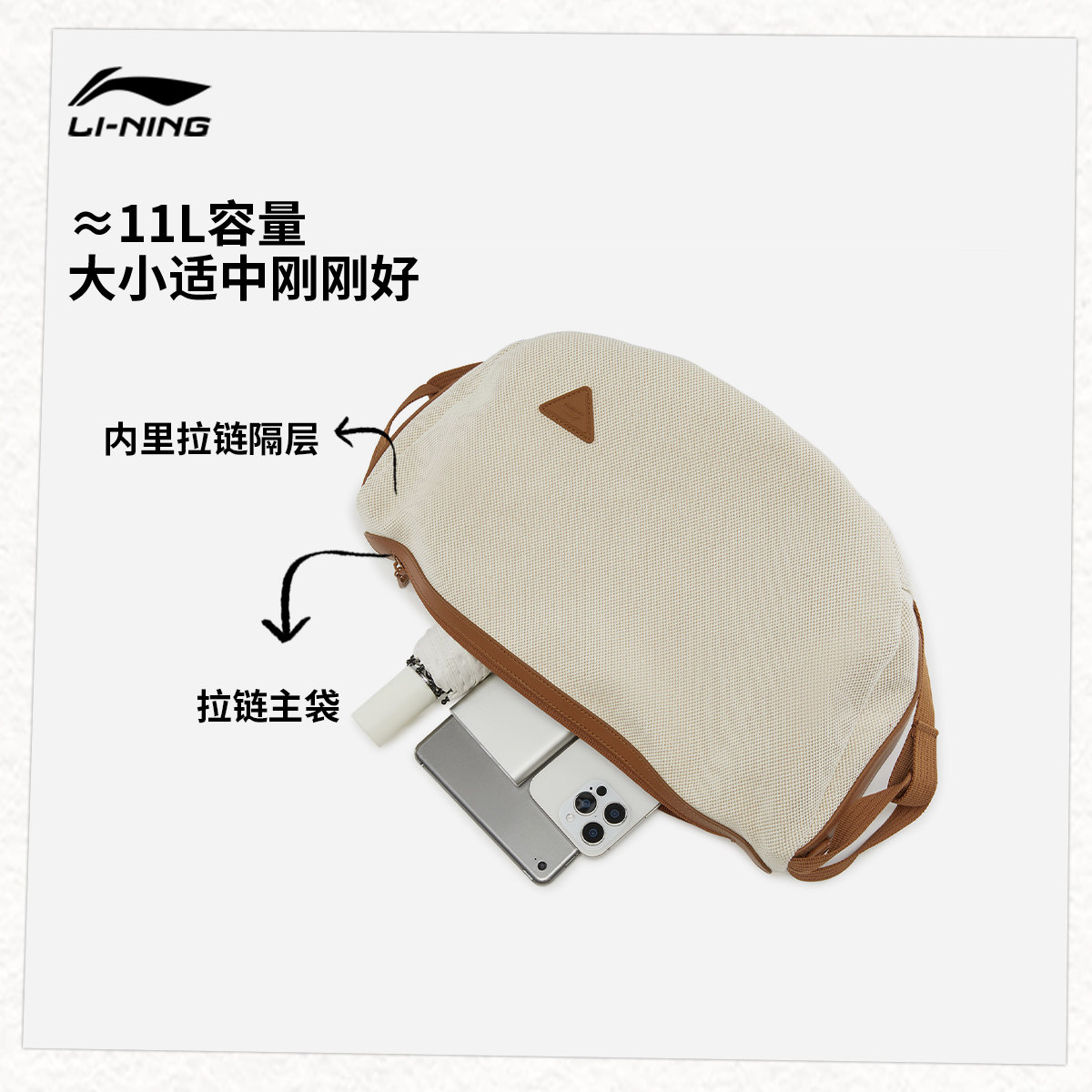 李宁斜挎包女包2026新款高级感轻奢小众通勤棕色高颜值休闲运动包