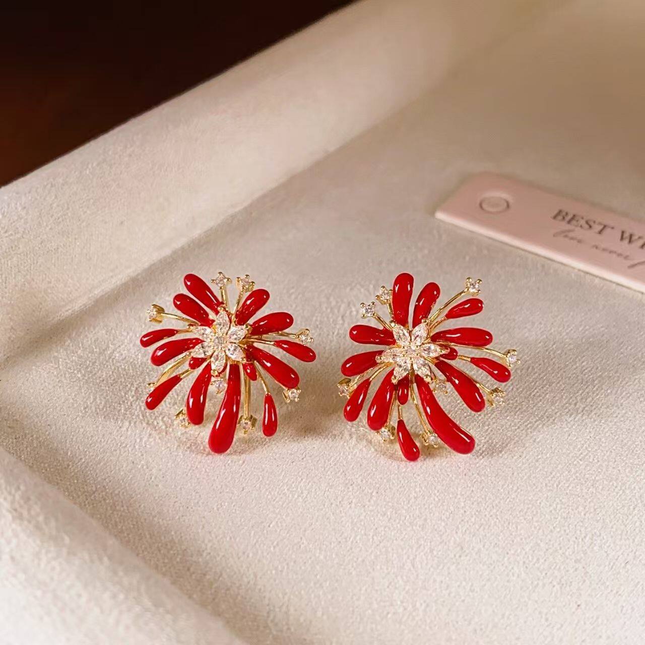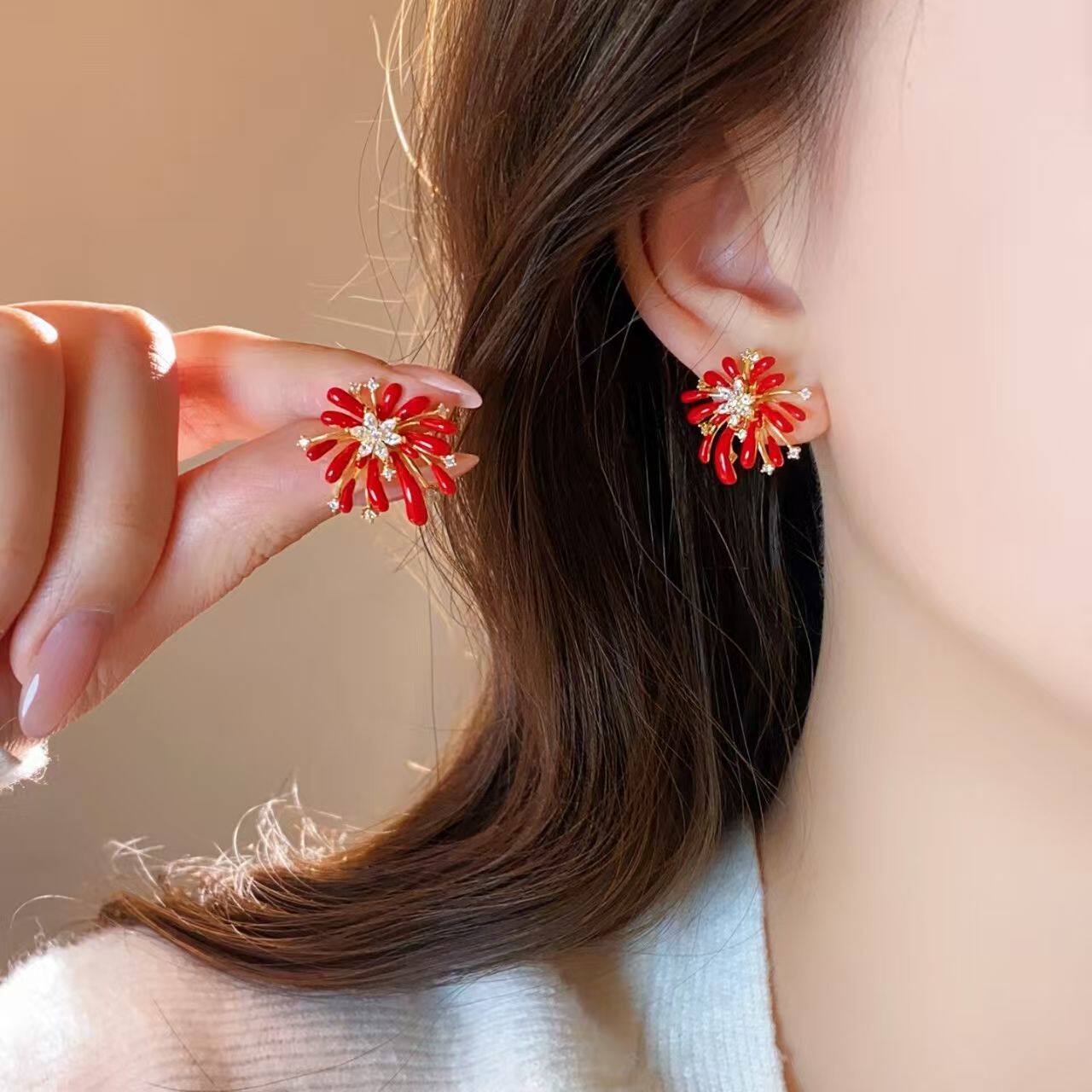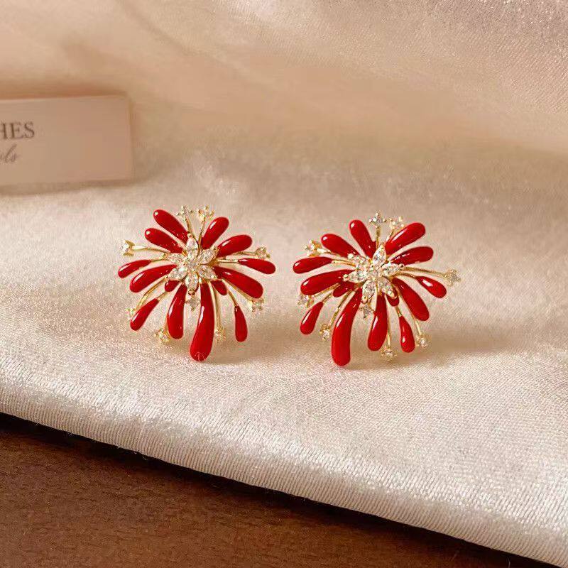 红色烟花花朵耳钉女2026新款爆款秋冬耳饰轻奢高级感气质新年耳环