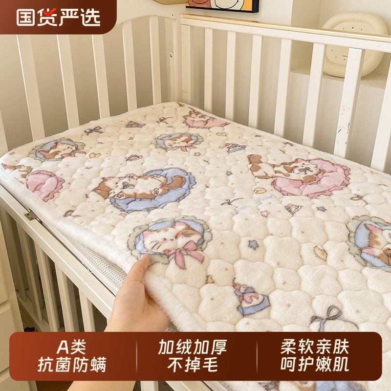 A类婴儿床垫冬季幼儿园午睡床褥子牛奶绒加厚宝宝夹棉防滑绒垫子