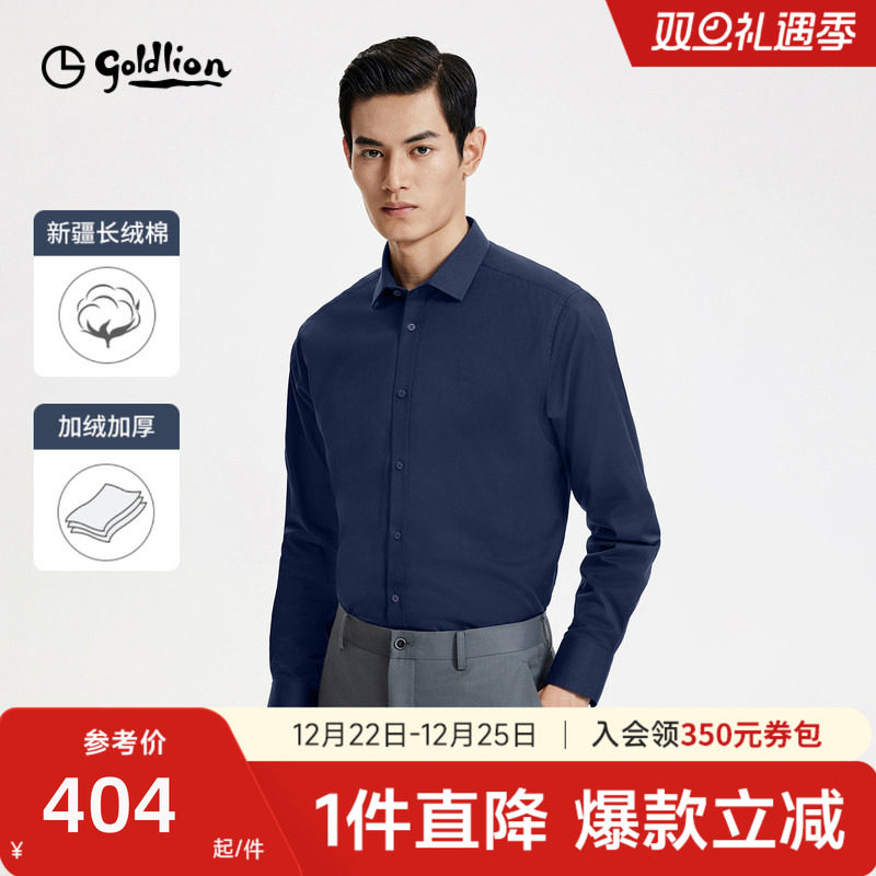 【加绒加厚】金利来秋冬新款男士长袖衬衫保暖长绒棉商务正装衬衣