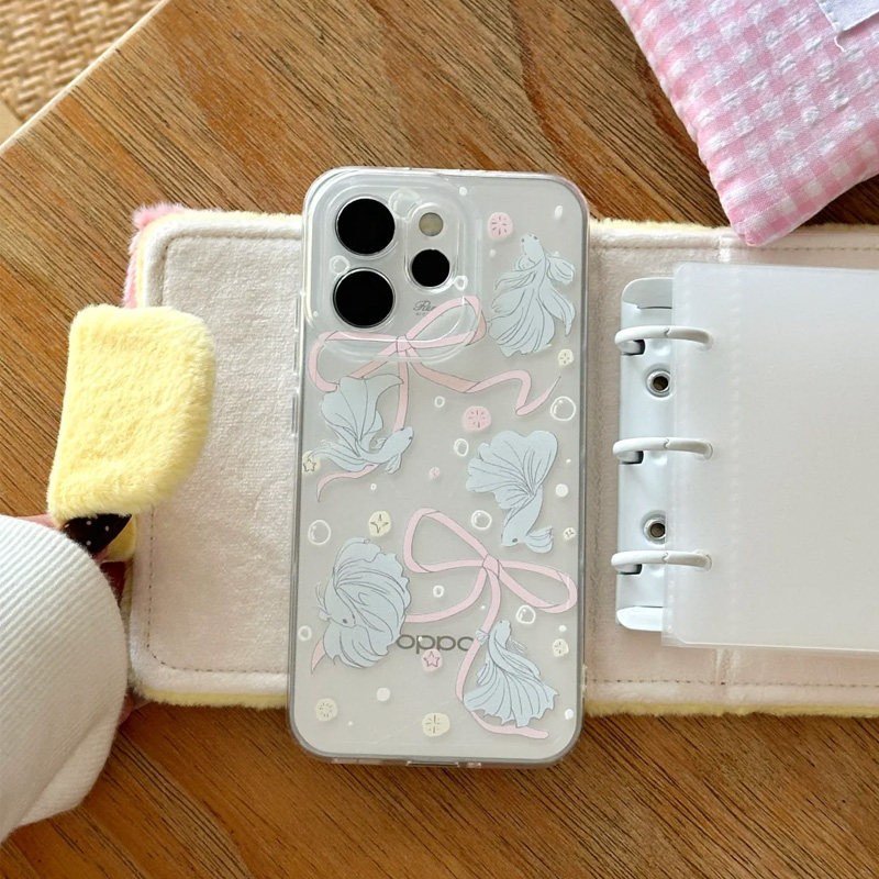 蝴蝶结小鱼适用苹果17手机壳iPhone15promax新款16华为p70荣耀300防摔13小米14透明vivo全包oppo软壳findx8女