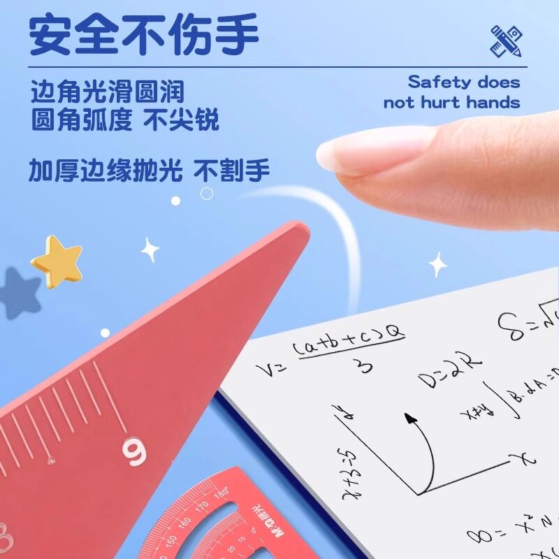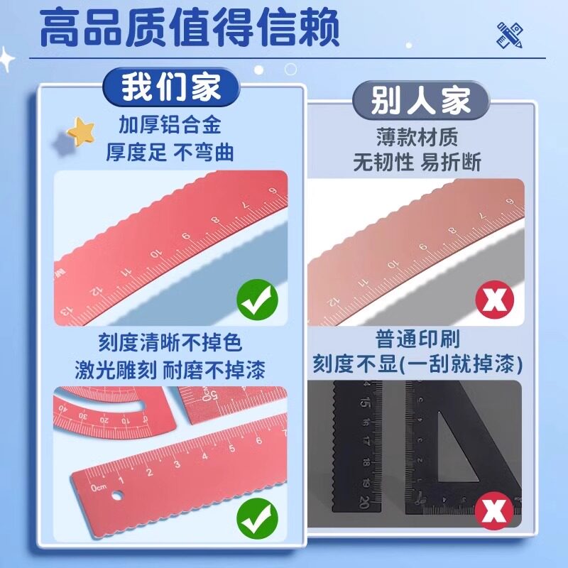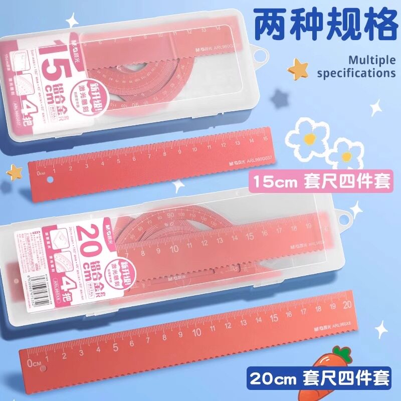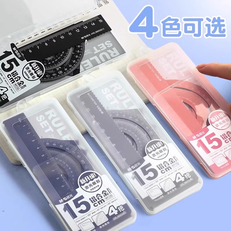 晨光金属尺子套装波浪小学生专用铝合金直尺三角尺套装量角器儿童多功能套尺日韩可爱用品三角板学习文具用品
