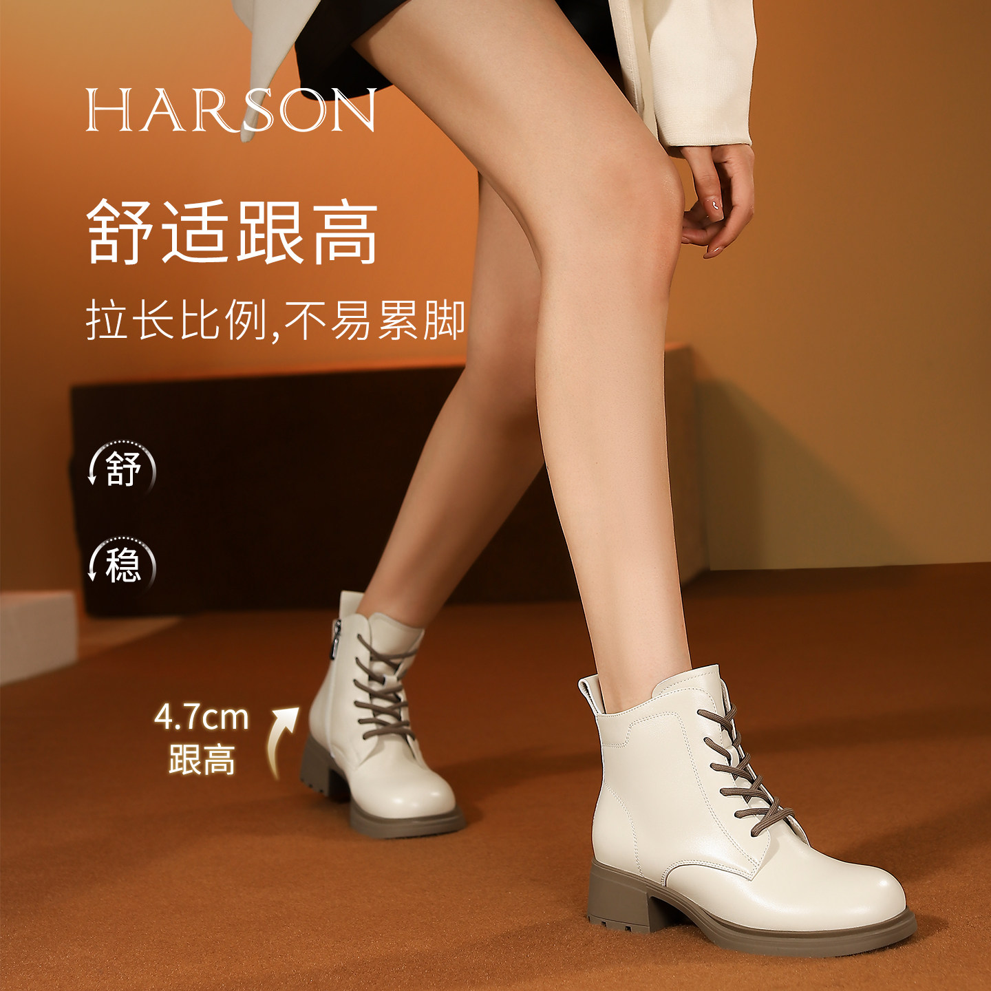 哈森马丁靴女秋冬新款加绒羊皮女靴休闲系带短靴HA242507
