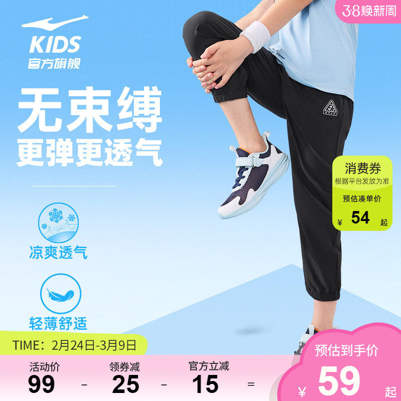 鸿星尔克童装儿童运动裤男童春季中大童长裤夏季速干女童防蚊裤子