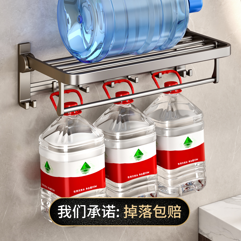 浴巾置物架浴室毛巾架免打孔卫生间一体收纳卫浴厕所挂杆壁挂双杆