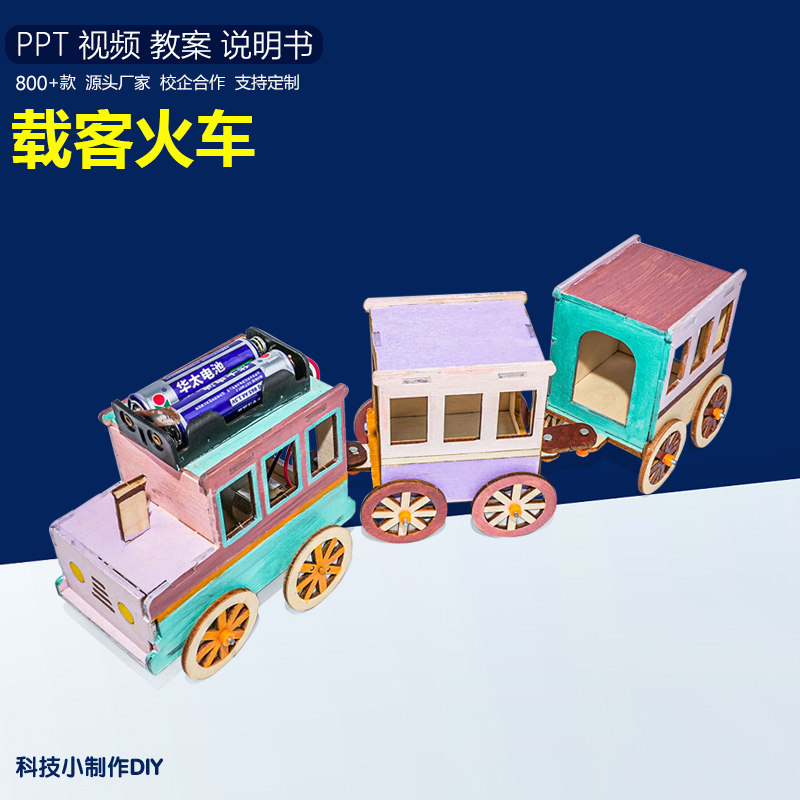 载客火车儿童木制拼接科技小制作STEAM教具实验器材包手工DIY推荐