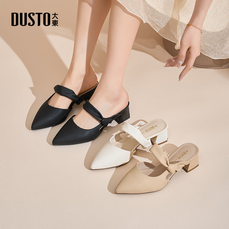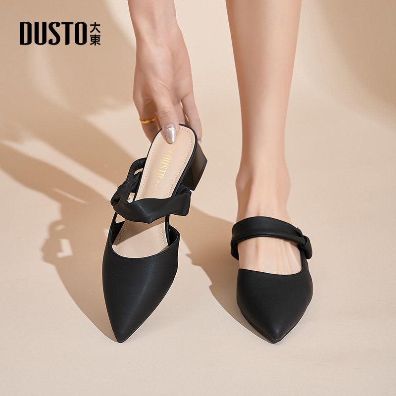 大东穆勒鞋女鞋2025夏季新款时尚简约优雅粗跟中跟套脚尖头X0039