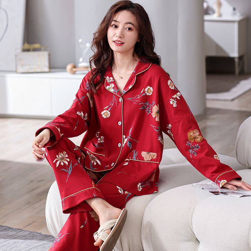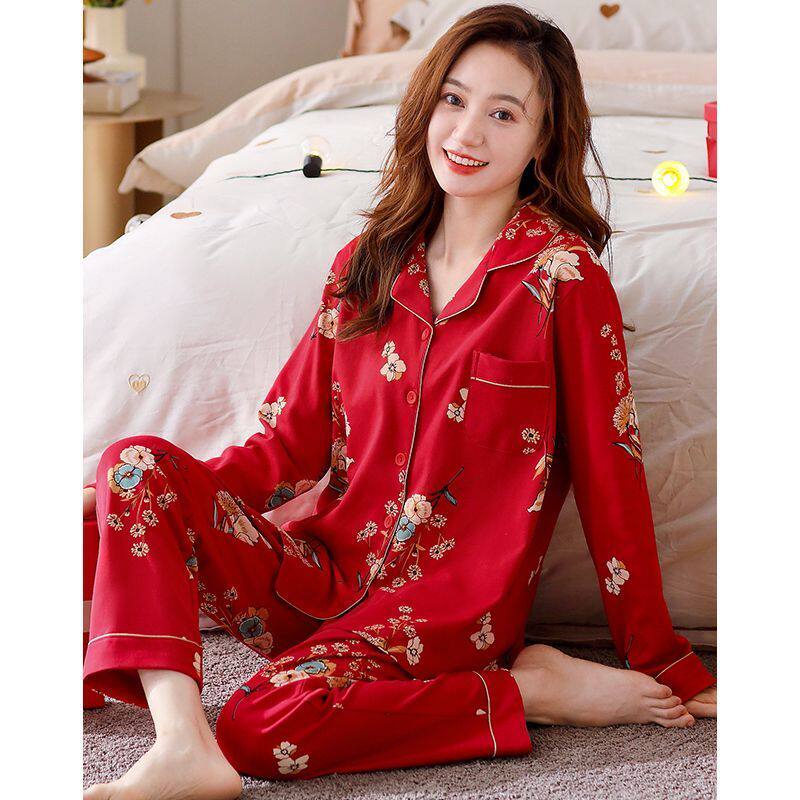 冬梧睡衣女春秋季长袖女款红色本命年中年妈妈秋冬薄款家居服套装
