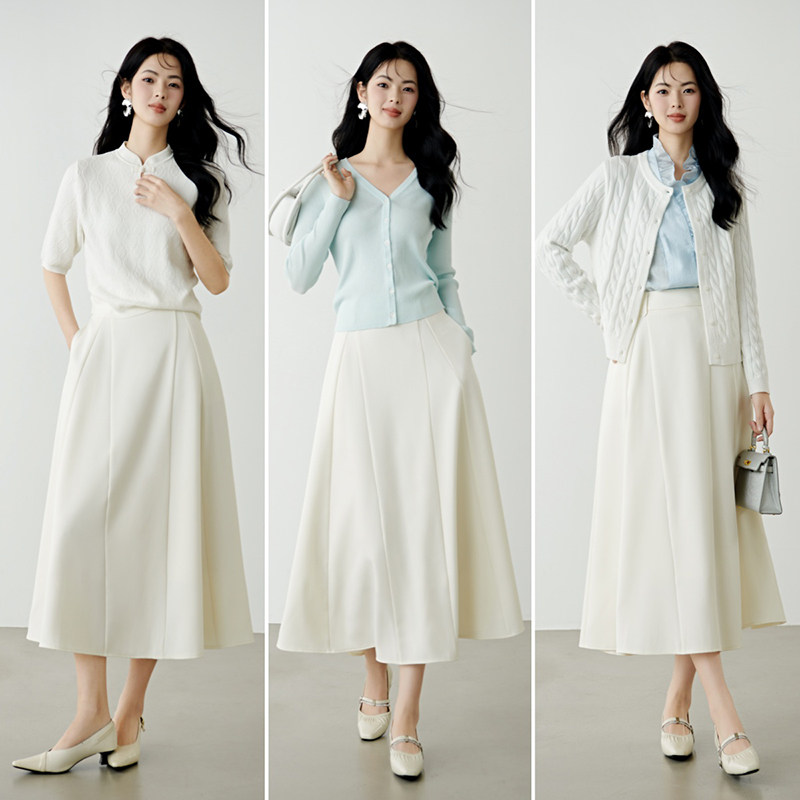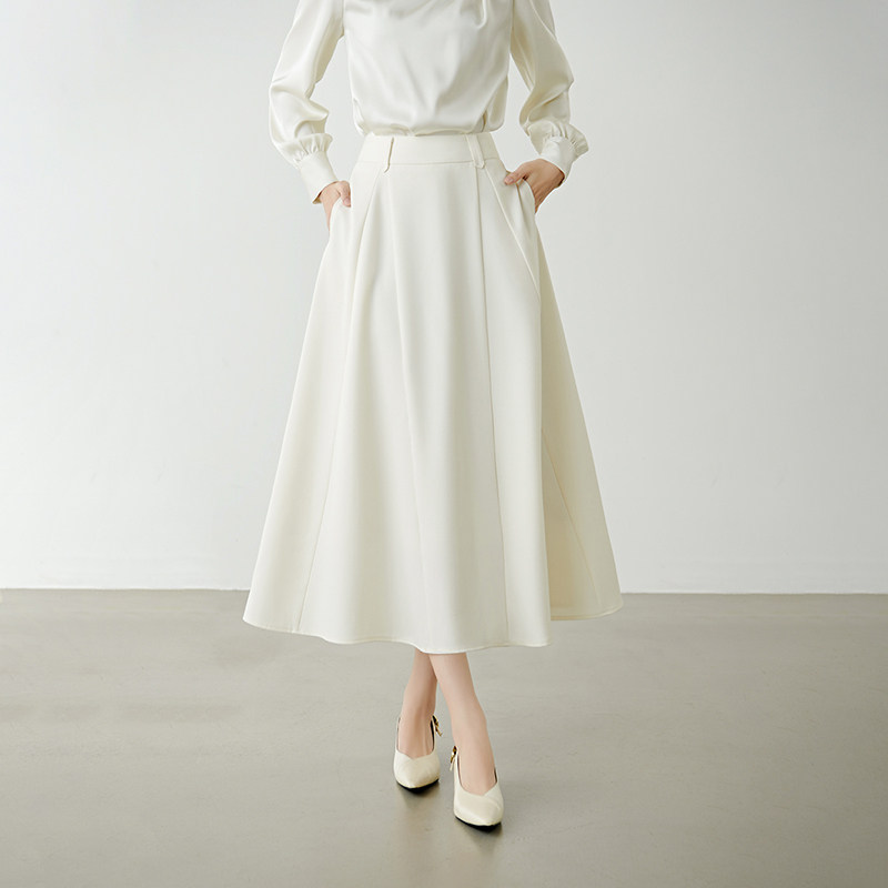 晚白2026年春新款梨型垂坠白色裙子高腰气质通勤大摆西装半身裙女