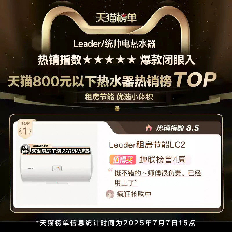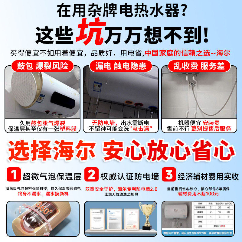 海尔出品统帅电热水器家用小型出租房卫生间洗澡40L节能速热X1