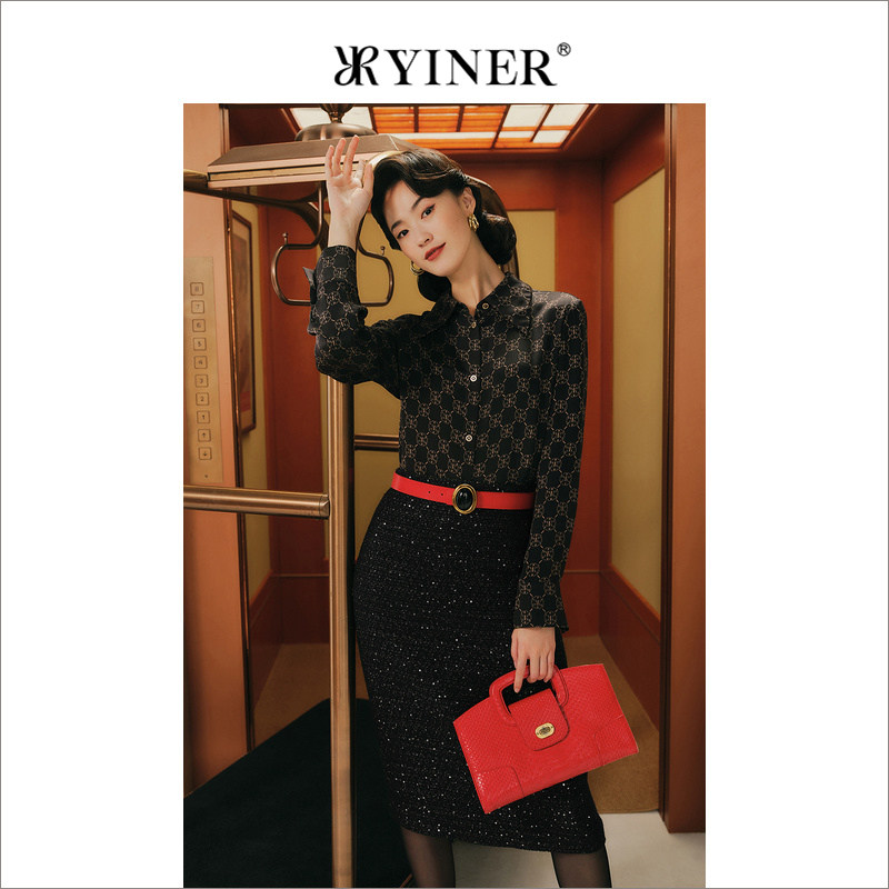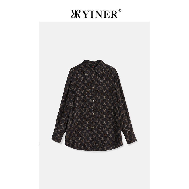 【1996系列】YINER音儿女装冬季真丝上衣桑蚕丝满印logo衬衫