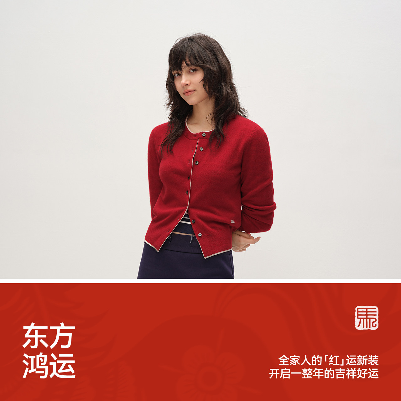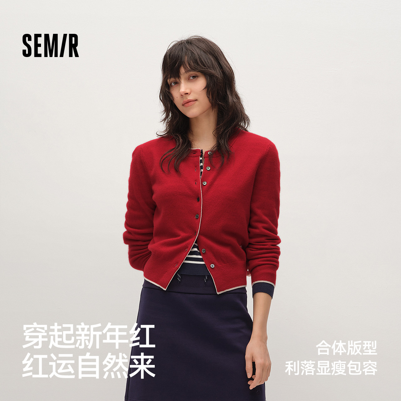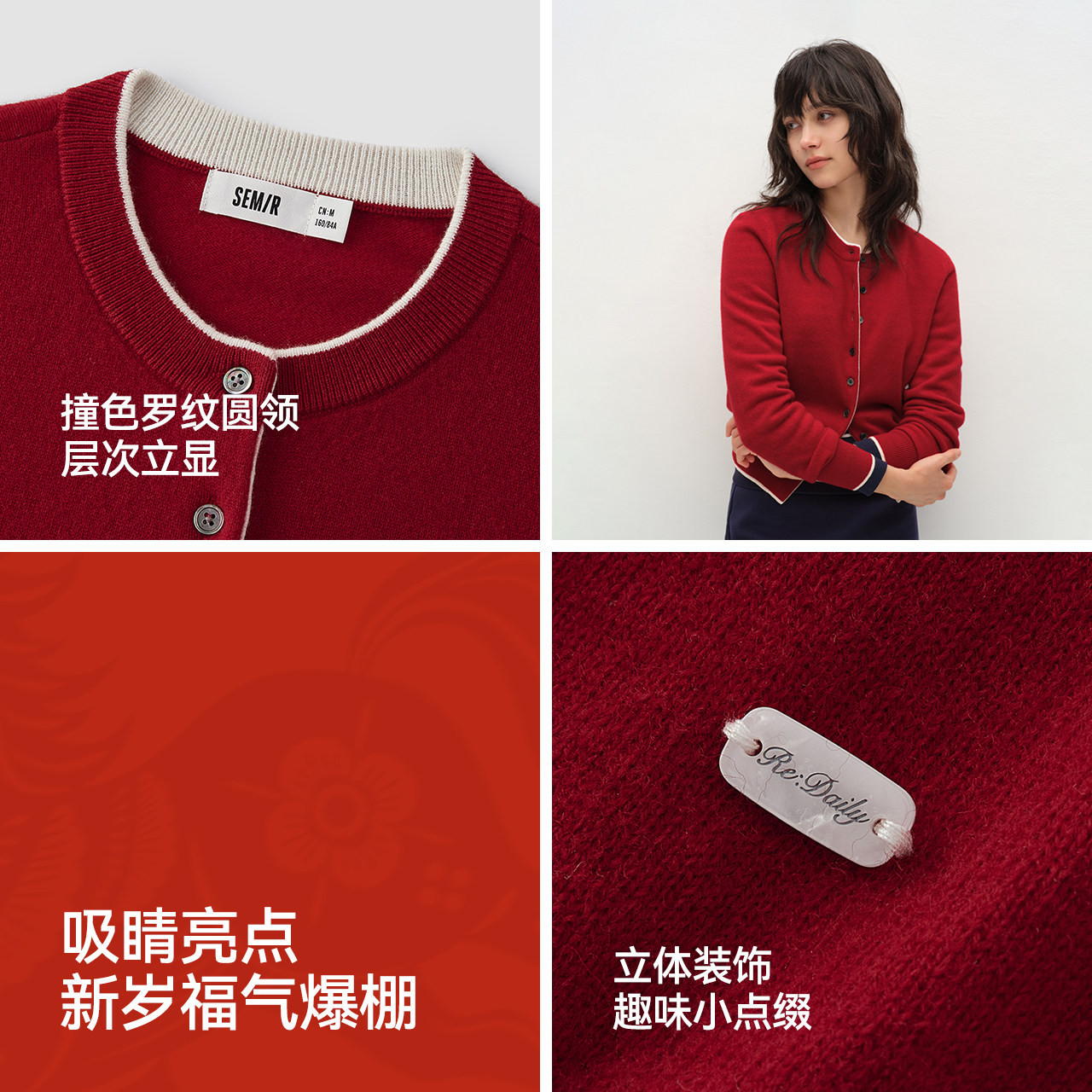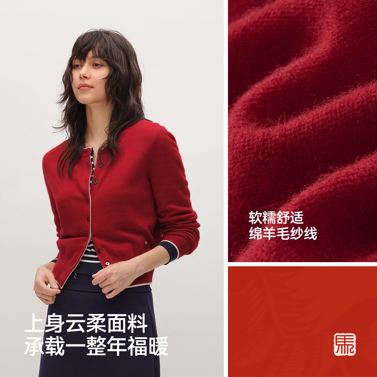 商场同款|森马针织开衫女春季短款撞色2026新款小个子新春羊毛衫