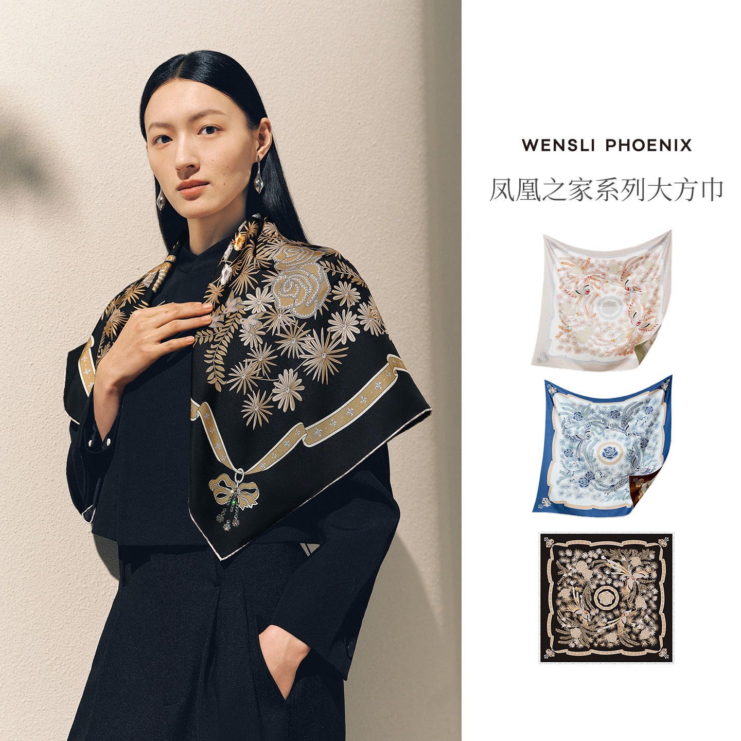 【凤凰之家】26春夏新品高端真丝丝巾烫钻手卷大方巾披肩流星之绊