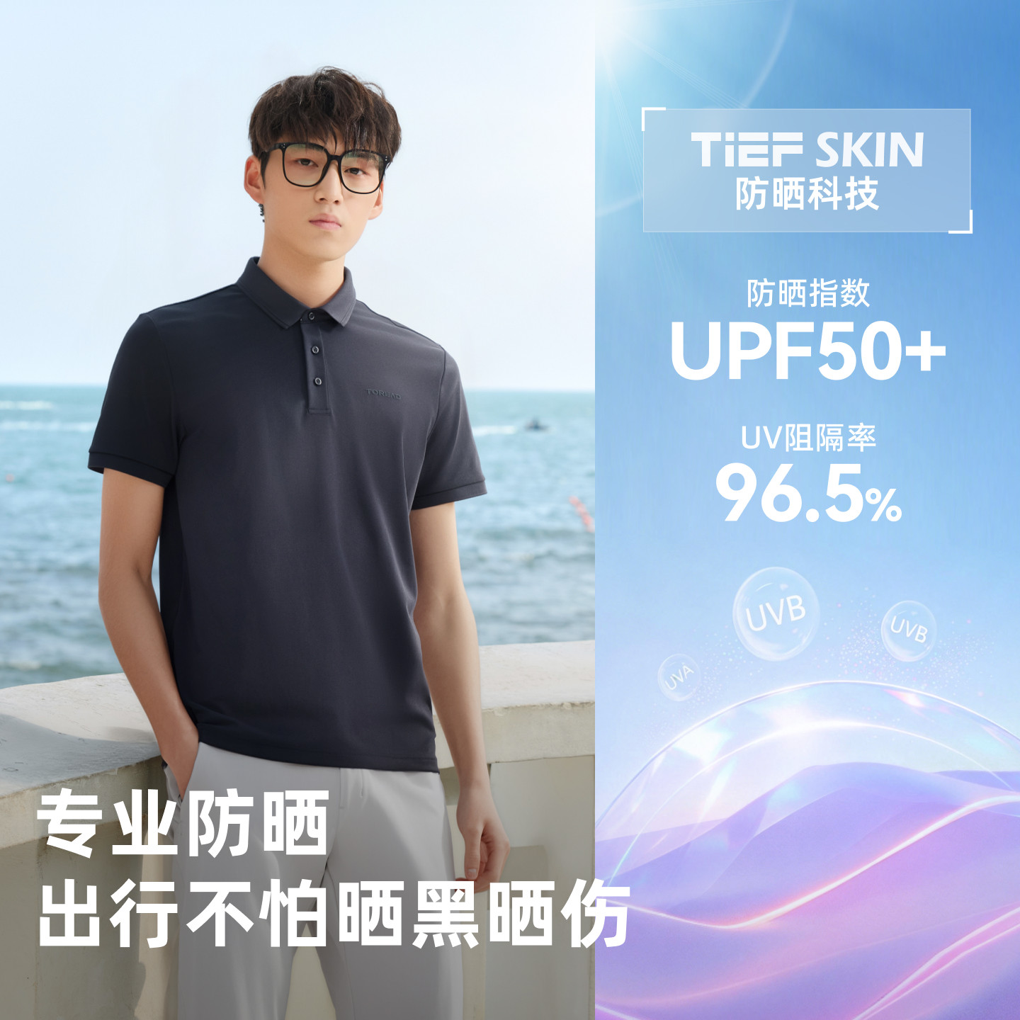 探路者男式功能短袖T恤户外运动UPF50+防晒吸湿速干短袖POLO衫女
