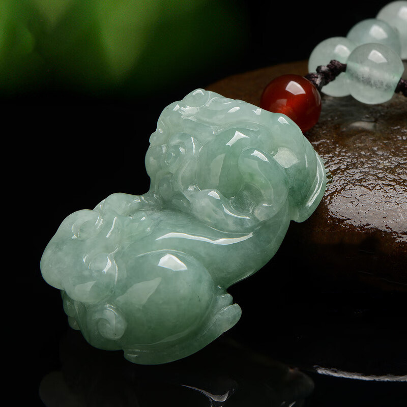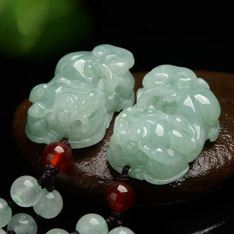 正品缅甸翡翠貔貅吊坠情侣玉坠冰糯种飘绿瑞兽玉石挂件皮丘带证书