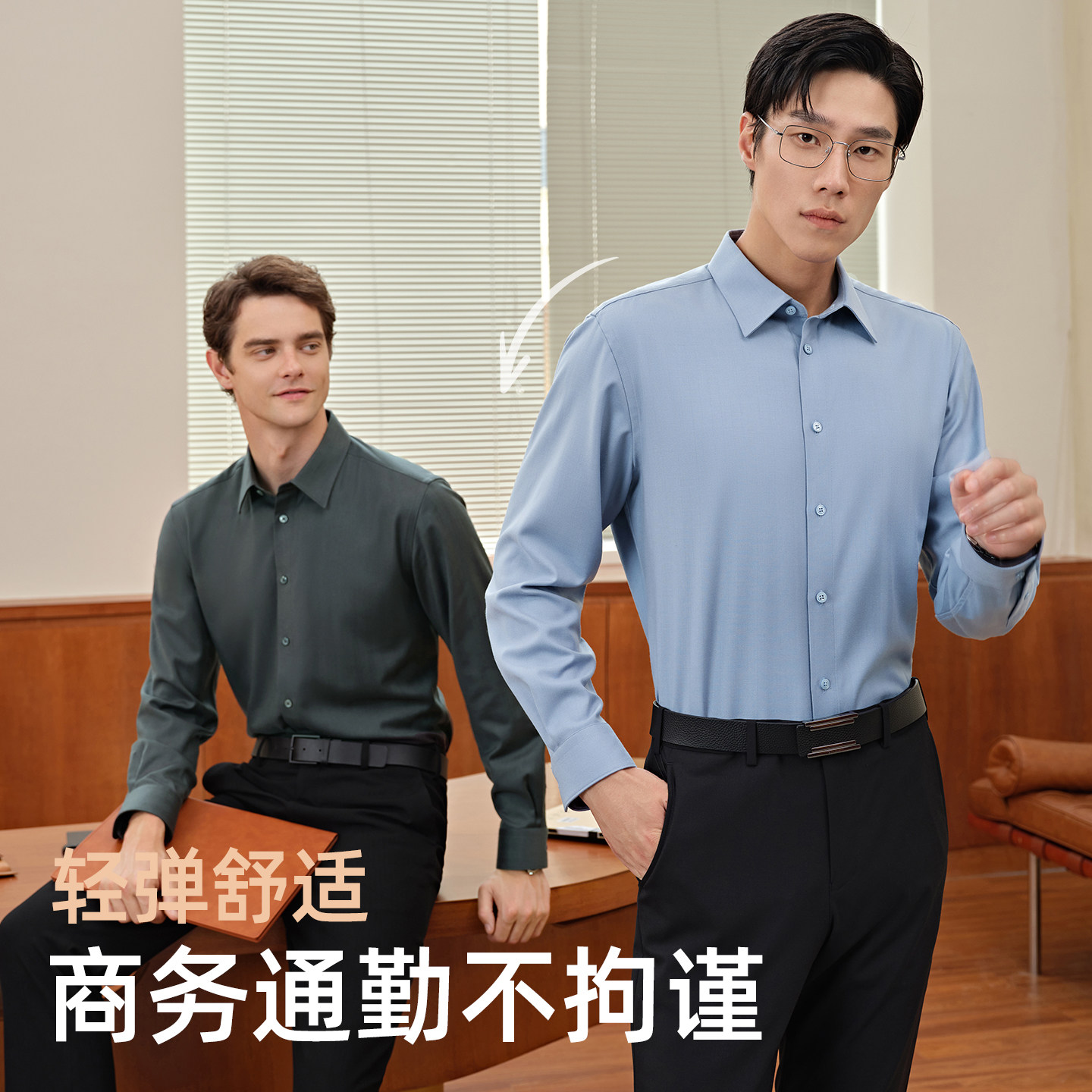 【清仓】杉杉品牌男士长袖衬衫纯色2025春季新款休闲免烫纯棉衬衣