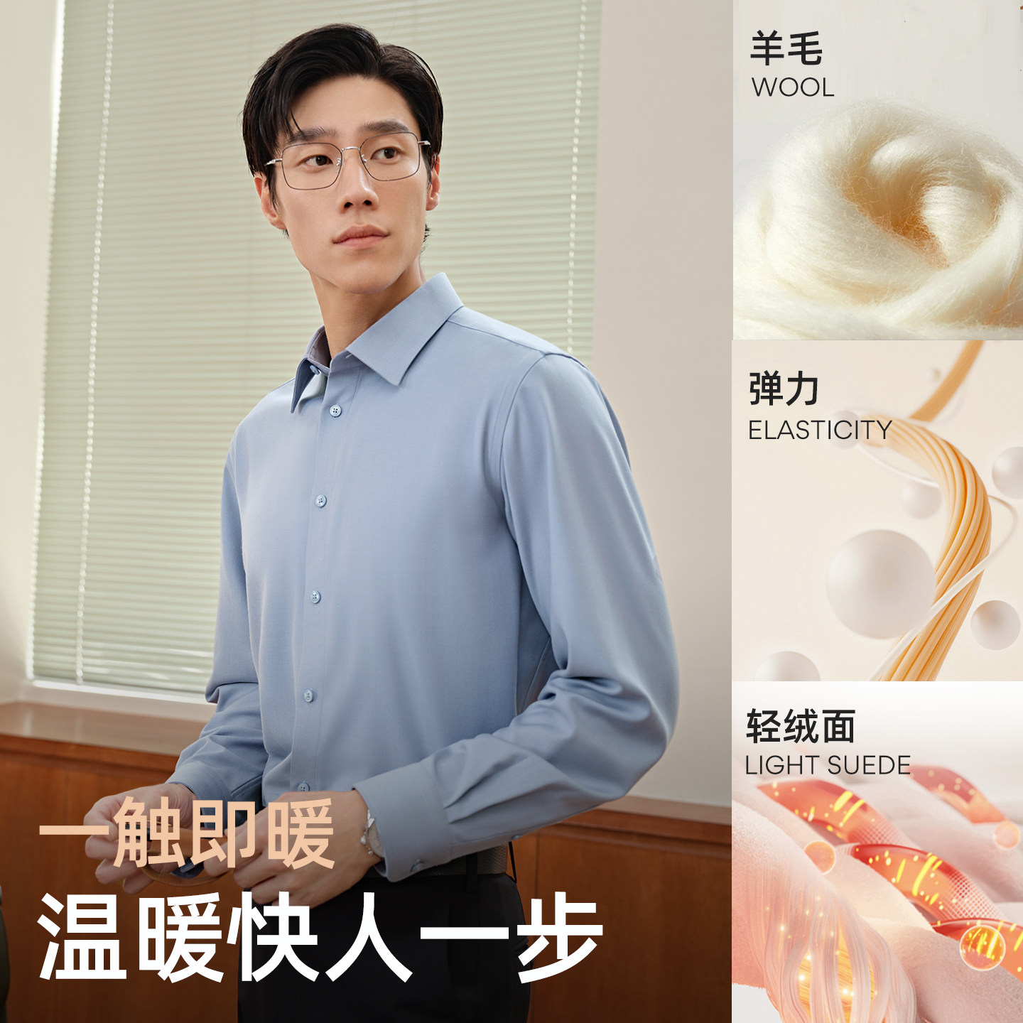【30%绵羊毛可机洗】雅戈尔秋季新品商务休闲绒面保暖长袖衬衫男
