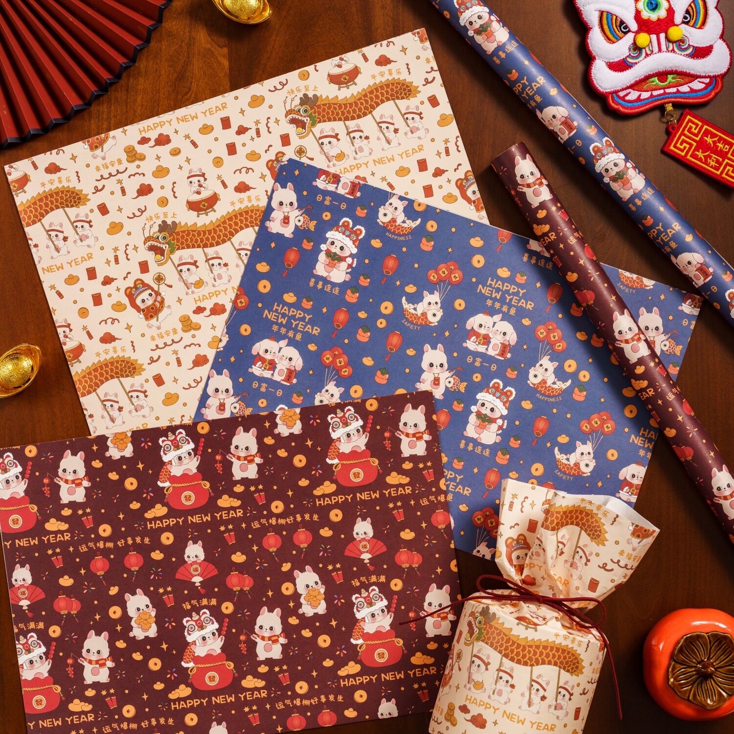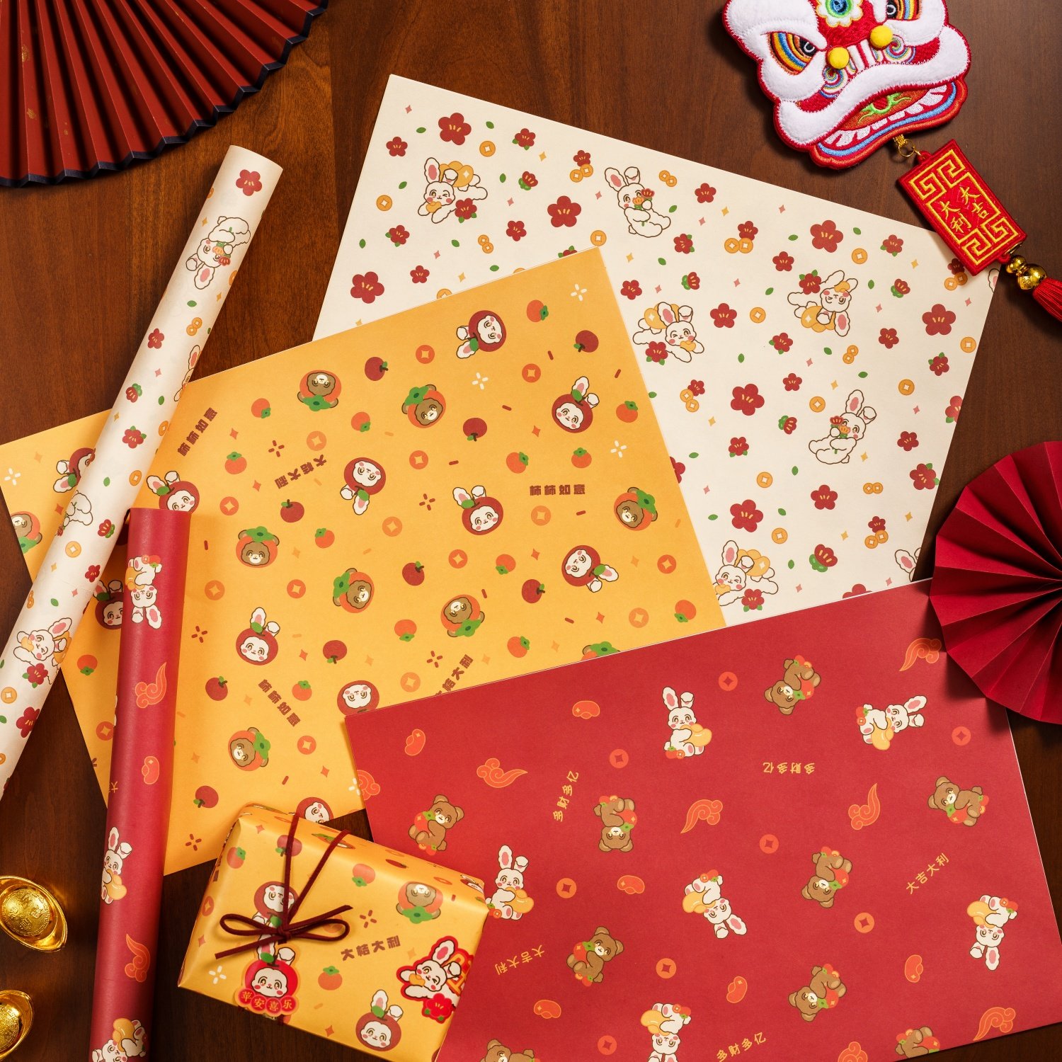 杰利新年红色包装纸礼品纸高级感国风生日礼物喜字牛皮纸包装纸大尺寸平安喜乐福字礼盒中国风新婚结婚礼物纸