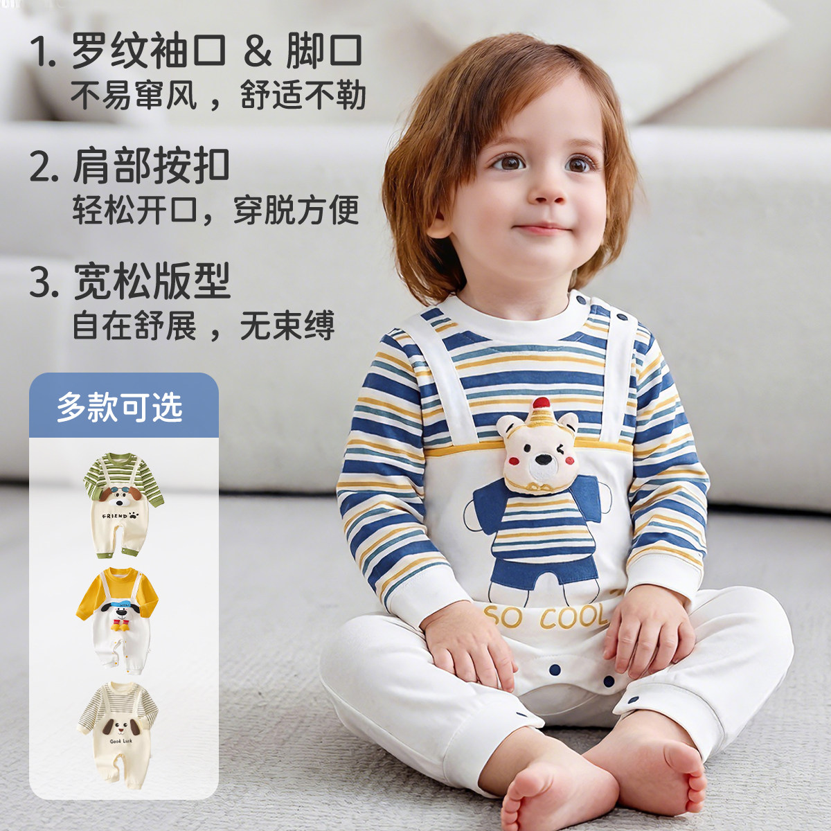 婴儿无骨春秋冬装连体衣新生儿纯棉宝宝衣服爬服哈衣爬行服系带