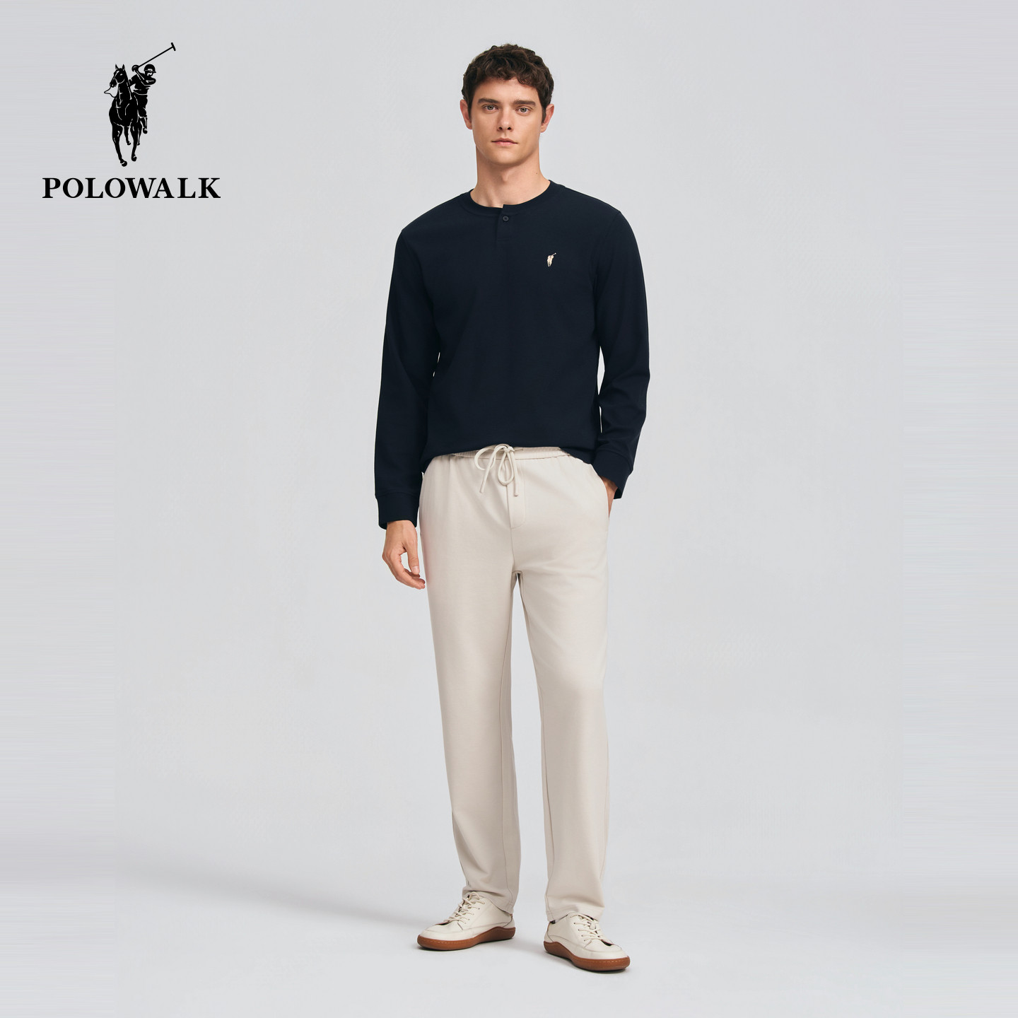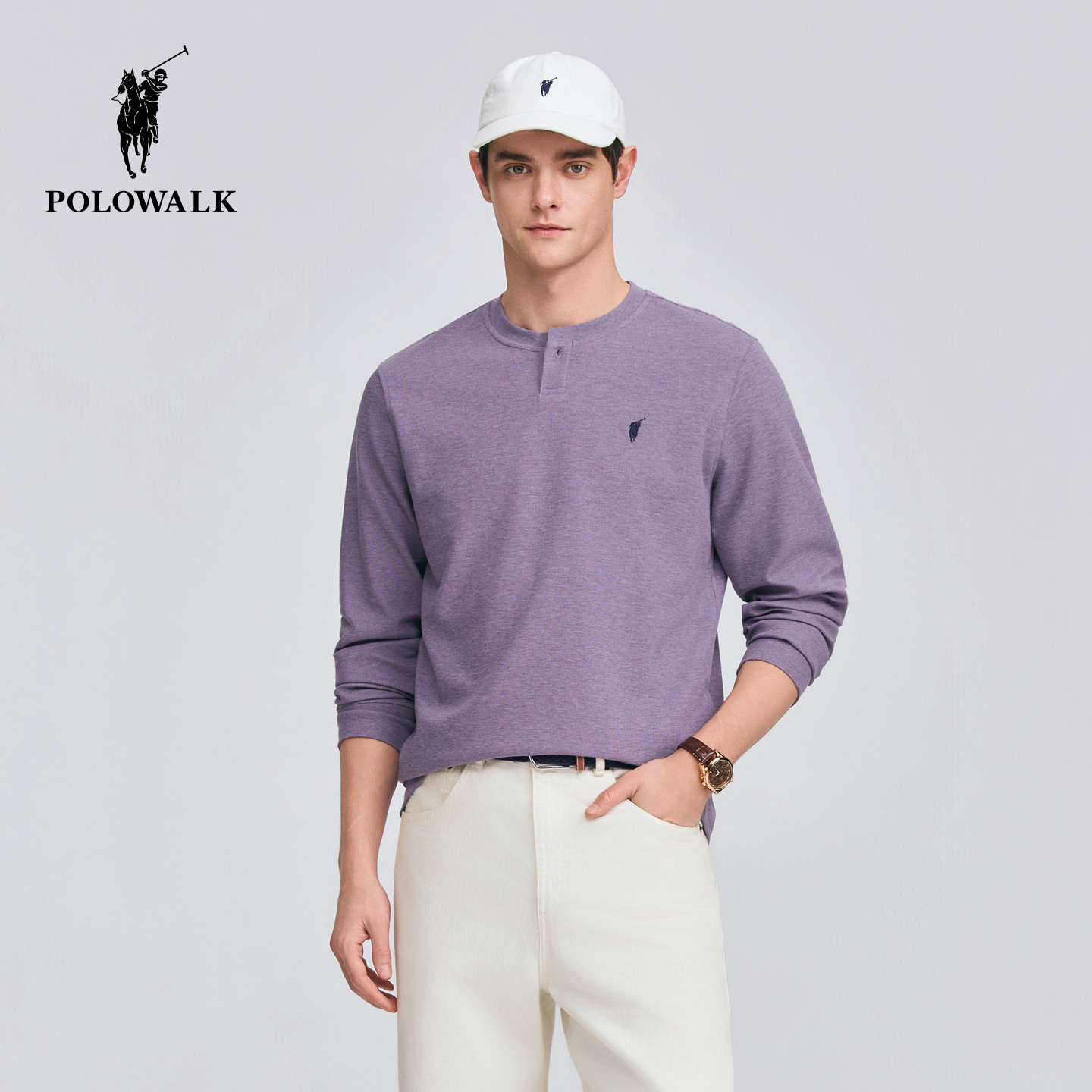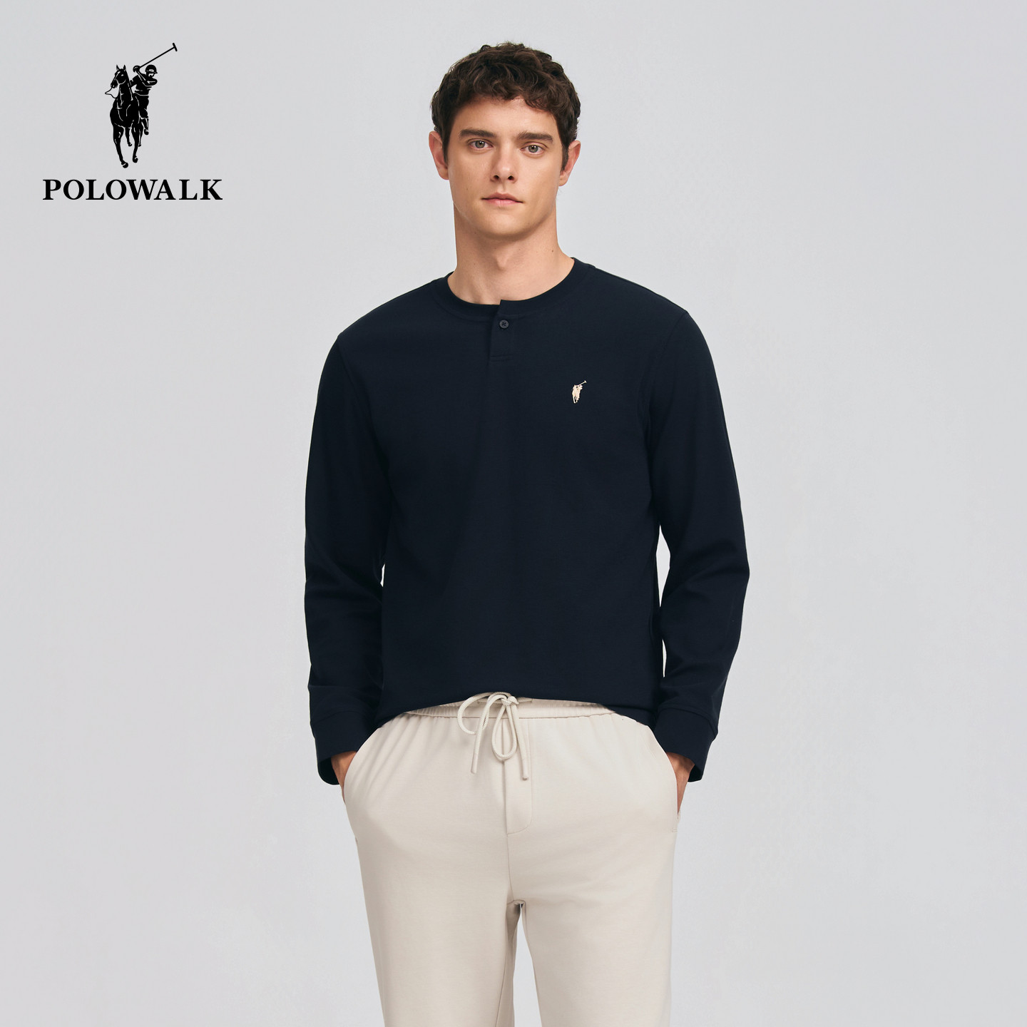 POLOWALK男式长袖T恤2026春季新品亨利领简约百搭套头上衣男装