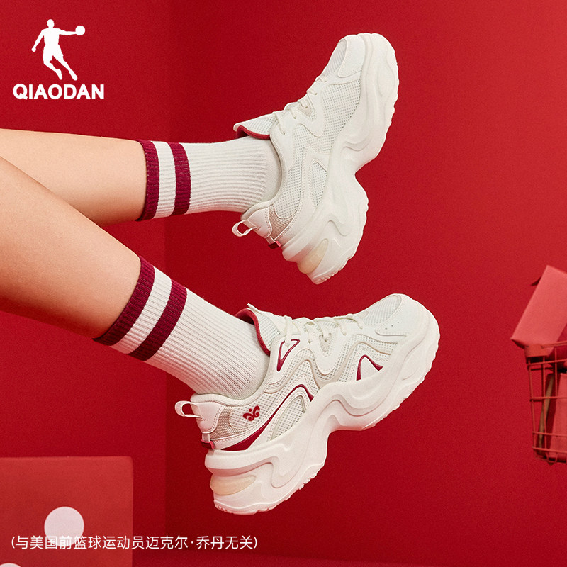 乔丹锦鲤老爹鞋女2026春季新年款红色休闲鞋厚底增高运动鞋女鞋子