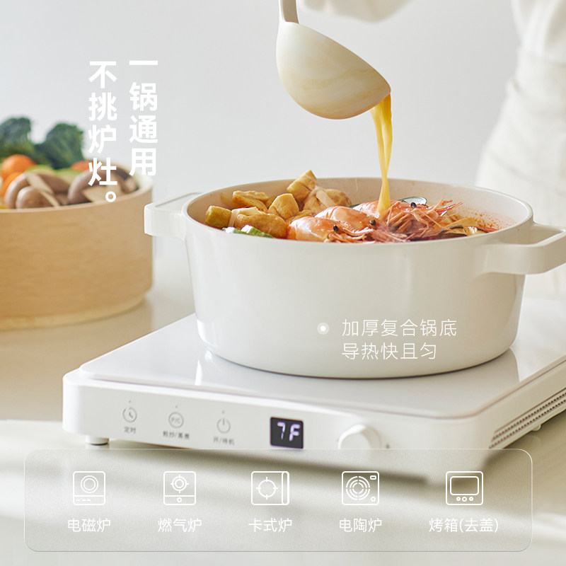 珐琅搪瓷微压汤锅家用无涂层炖煮汤锅不粘双耳锅燃气电磁炉通用H