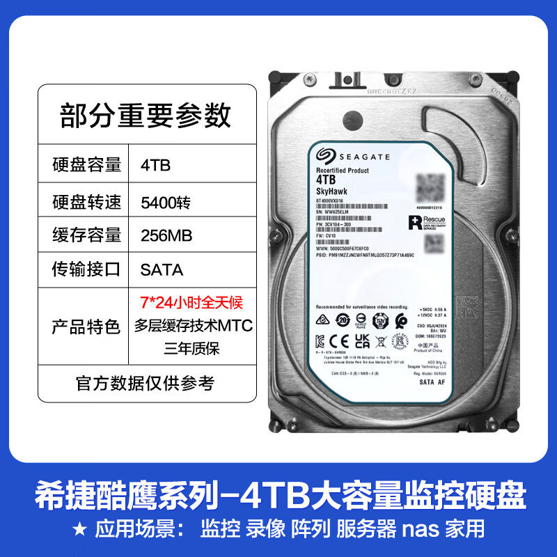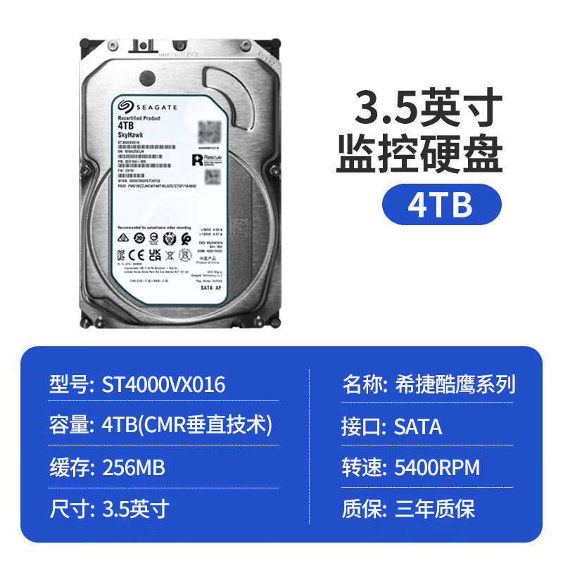 Seagate/希捷ST4000VX016 酷鹰4tb监控安防录像机CMR垂直机械硬盘