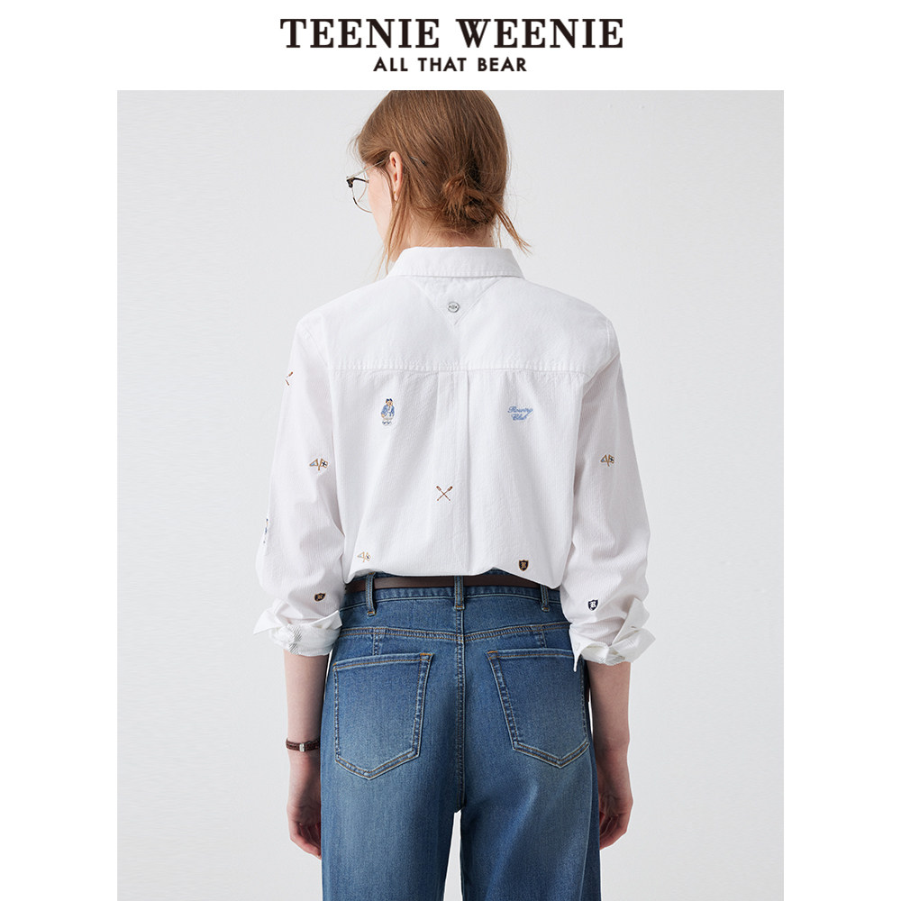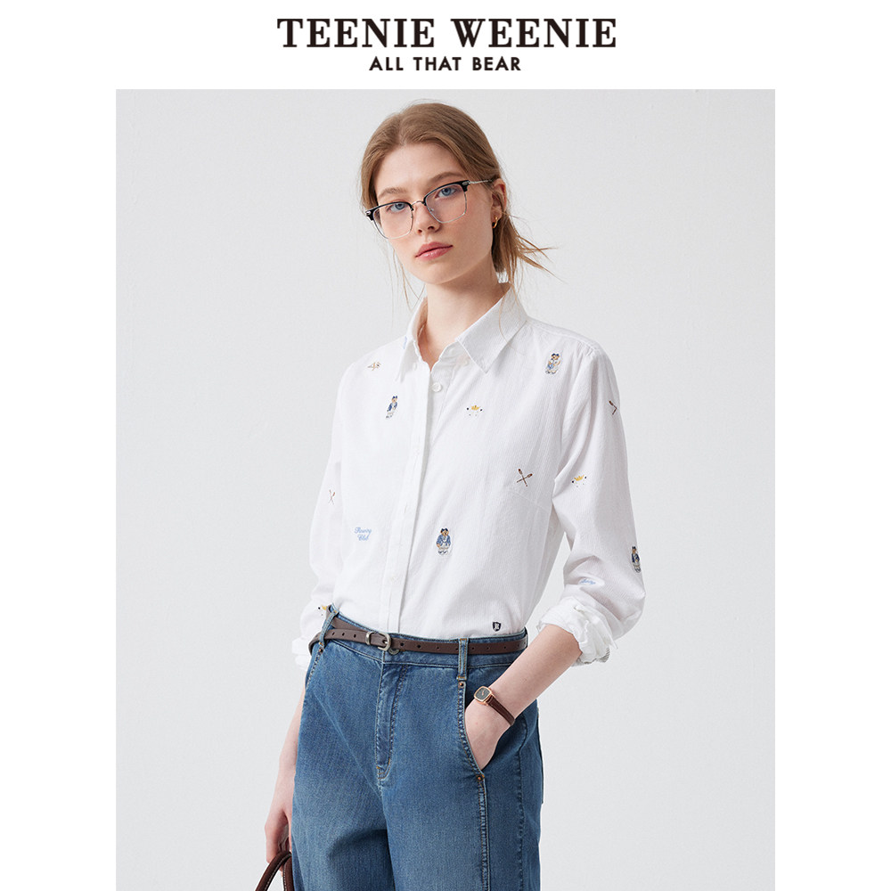 TeenieWeenie小熊奥莱衬衫2025年夏季新款简约休闲泡泡袖刺绣衬衣