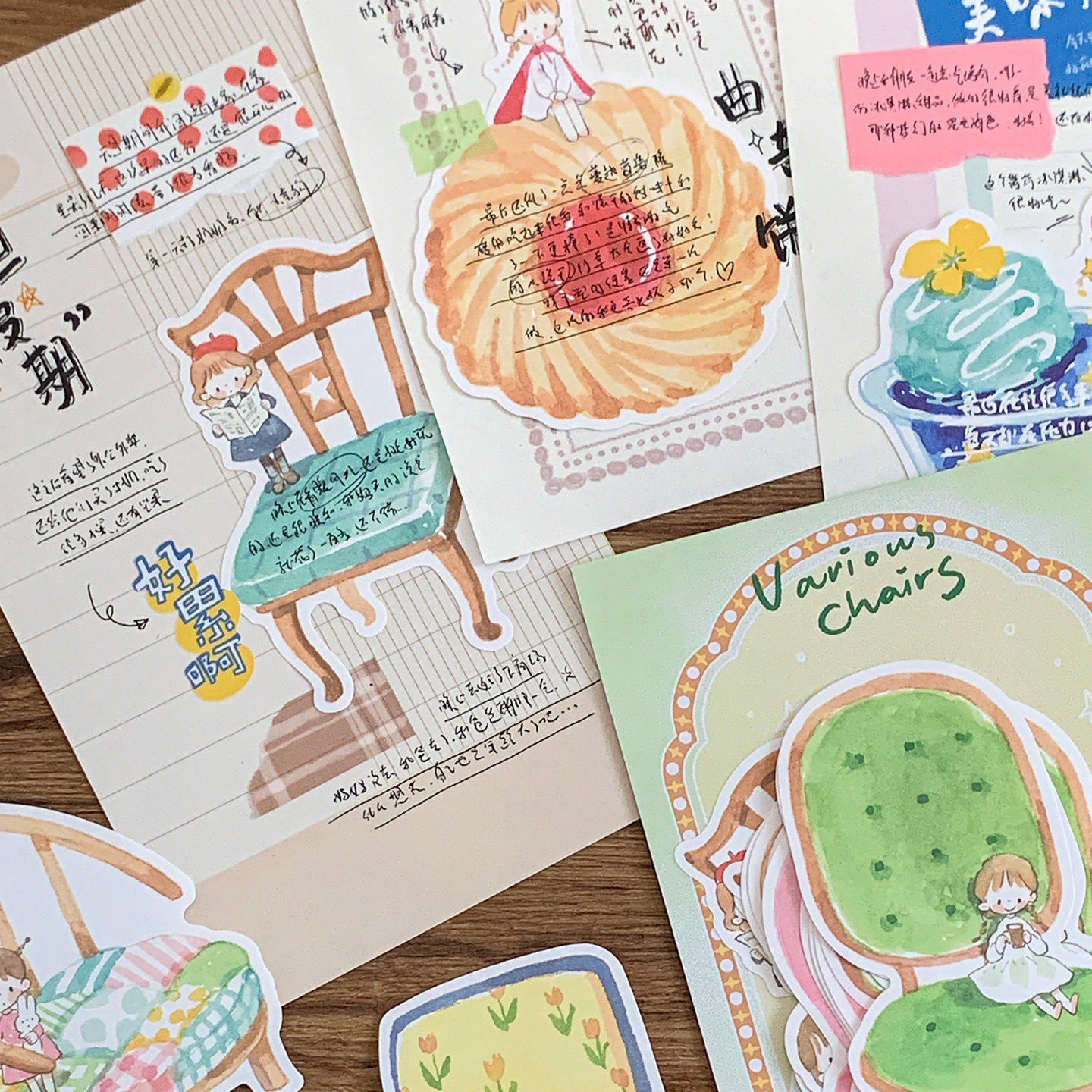 卓大王【手绘便签】异形可书写杯子甜品饼干曲奇椅子手帐素材