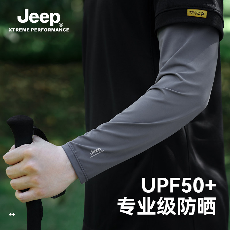 jeep吉普防晒冰袖夏季男士宽松直筒冰丝袖套防紫外线钓鱼手套男夏
