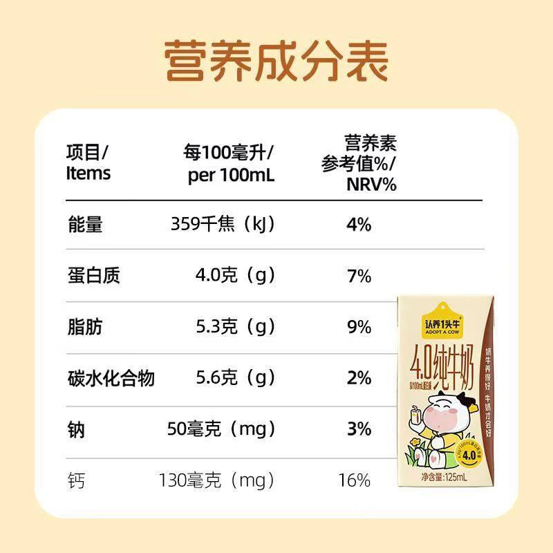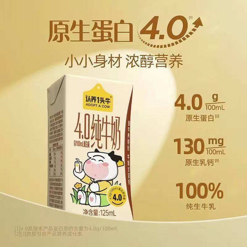 认养一头牛4.0g蛋白纯牛奶125ml*16盒学生牛奶年货礼盒10月高钙