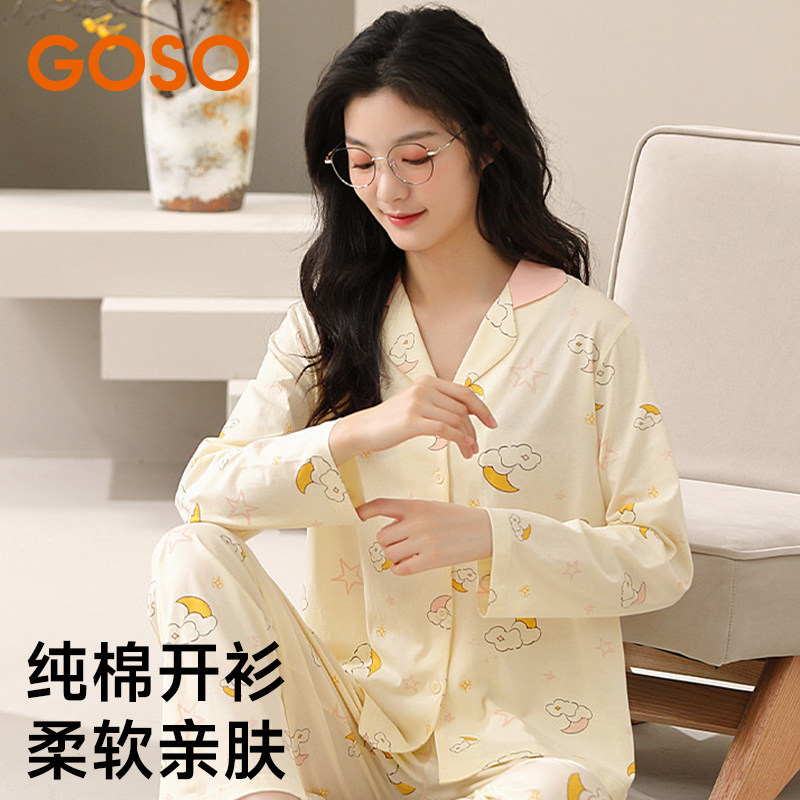 GOSO香蜜闺秀纯棉家居服男女夏款新款套装可外穿睡衣内衣套装
