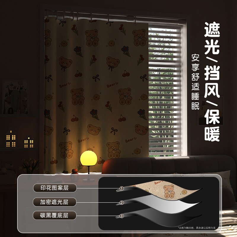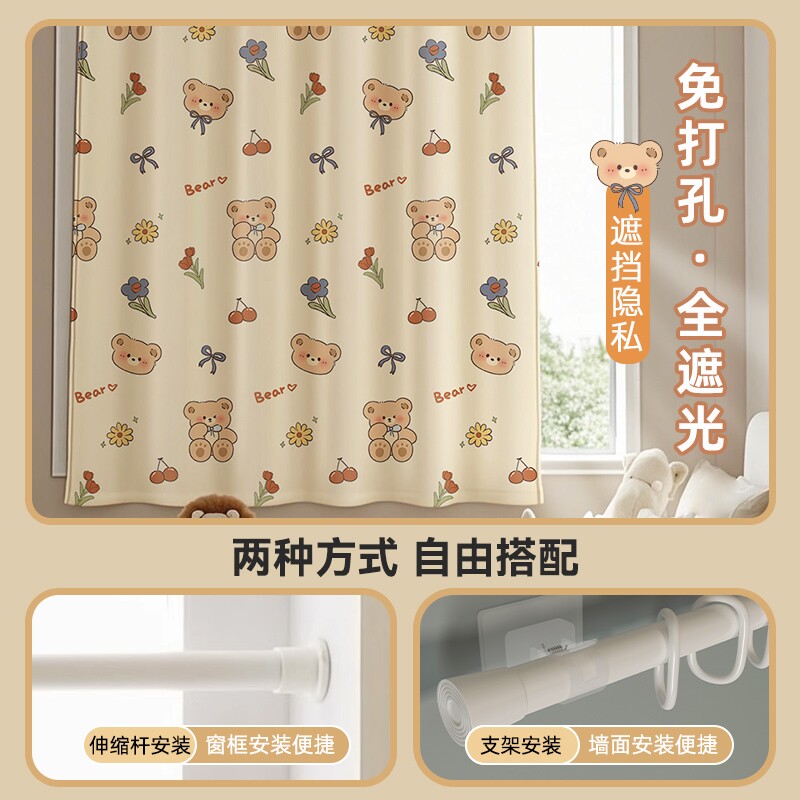 2024窗帘全遮光免打孔伸缩杆新款出租房卧室遮阳卫生间隔断遮挡帘