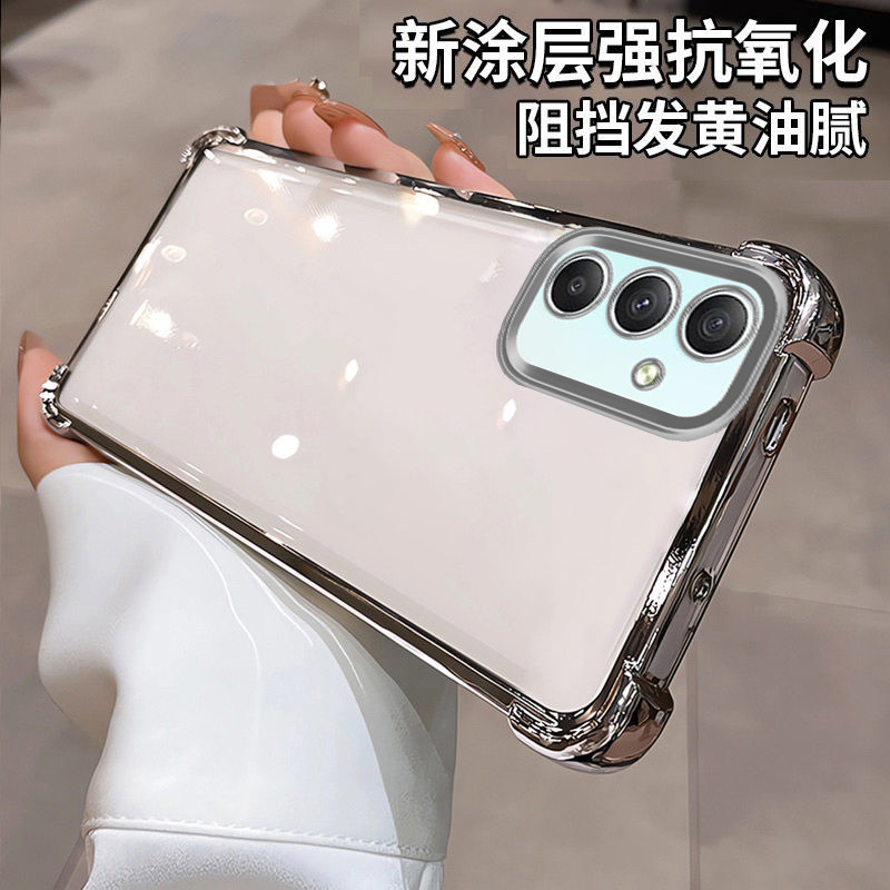 三星a34手机壳新款四角气囊硅胶防摔时尚镜头全包软壳适用Samsunga34高级感奢华强抗氧化简约电镀透明手机壳