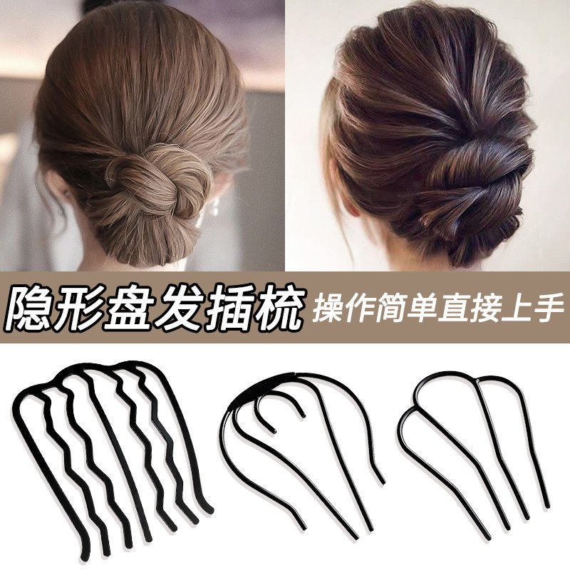 懒人盘发神器丸子头四齿插梳发梳发簪倒插发卡U形发夹造型头饰女