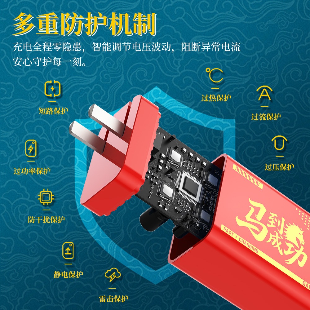 数意马到成功充电器超级快充折叠插脚低温保护便携手机充电头USB插头适用华为苹果安卓typec小米vivo荣耀oppo