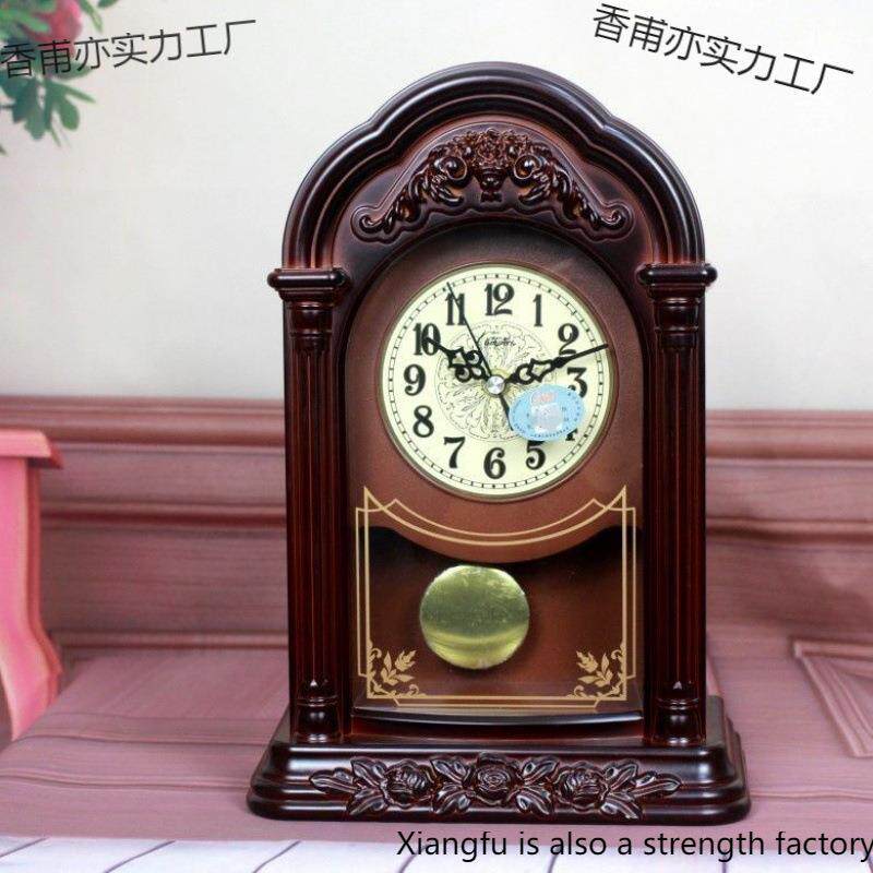 欧式复古座钟客厅创意时钟台式卧室静音摆件时尚大号台钟塑料闹钟