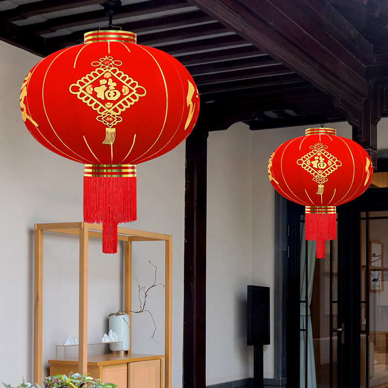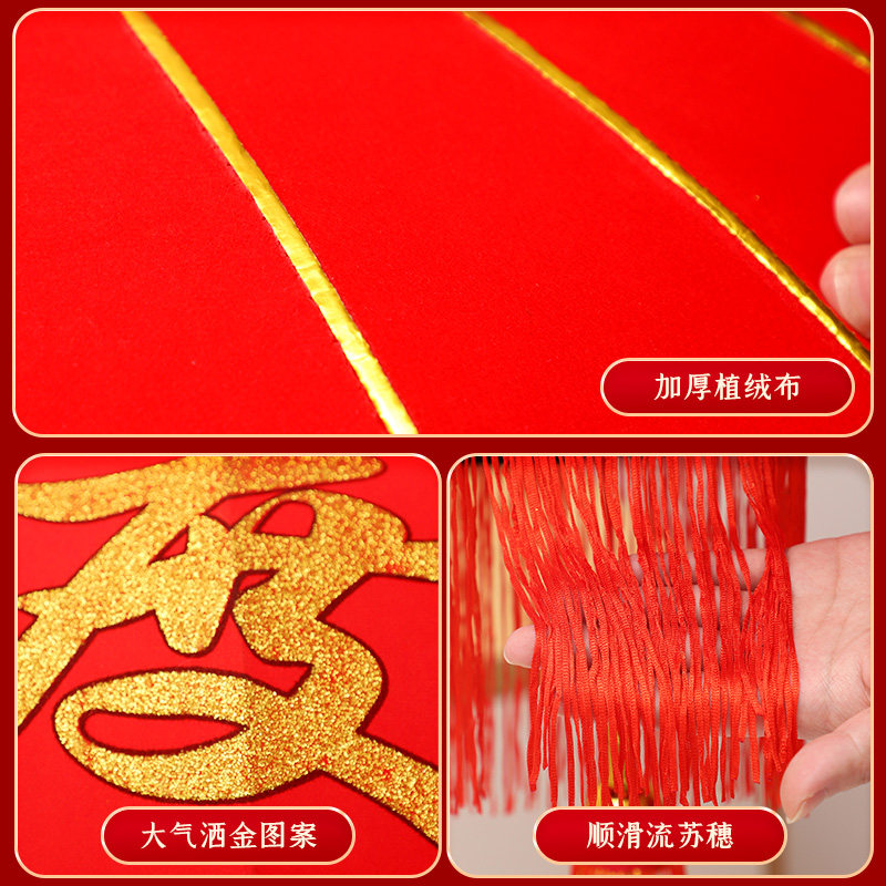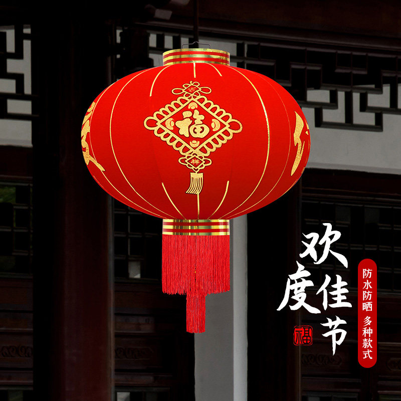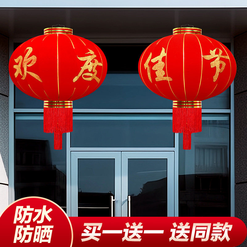 灯笼过年新年欢度佳节大红植绒春节布置装饰户外防水挂饰绒布元旦
