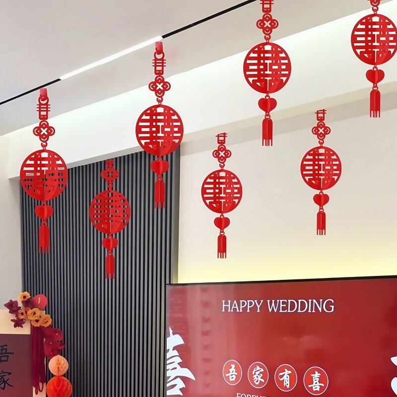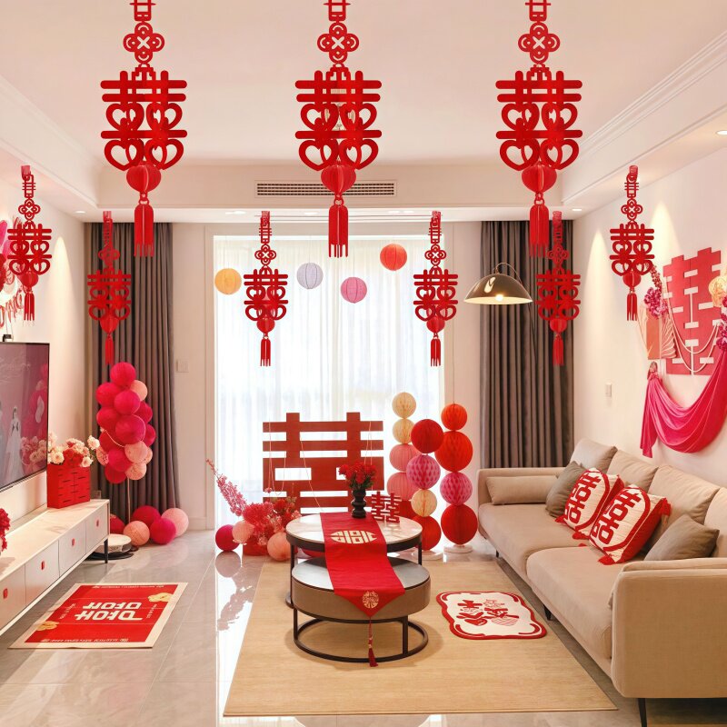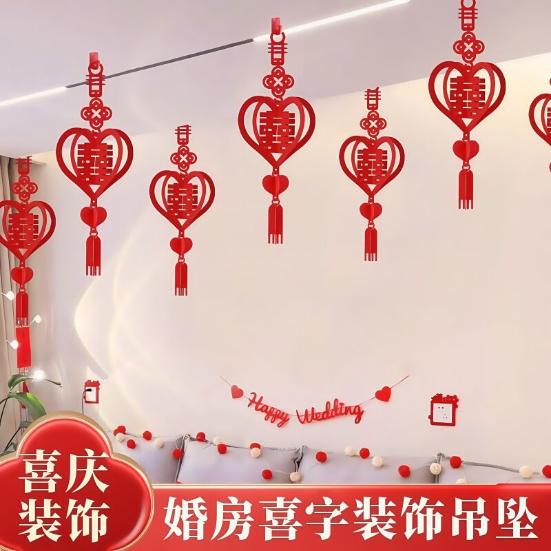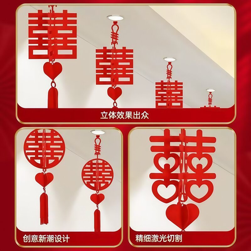 婚房布置装饰套装立体喜字灯笼客厅卧室天花板吊顶挂件高级感结婚