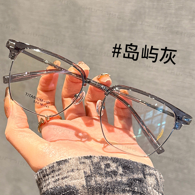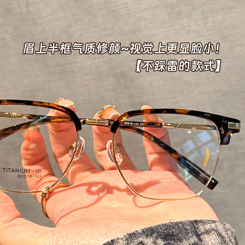 超轻钛架复古玳瑁色眉线半框眼镜近视女可配度数大框显瘦眼睛架男