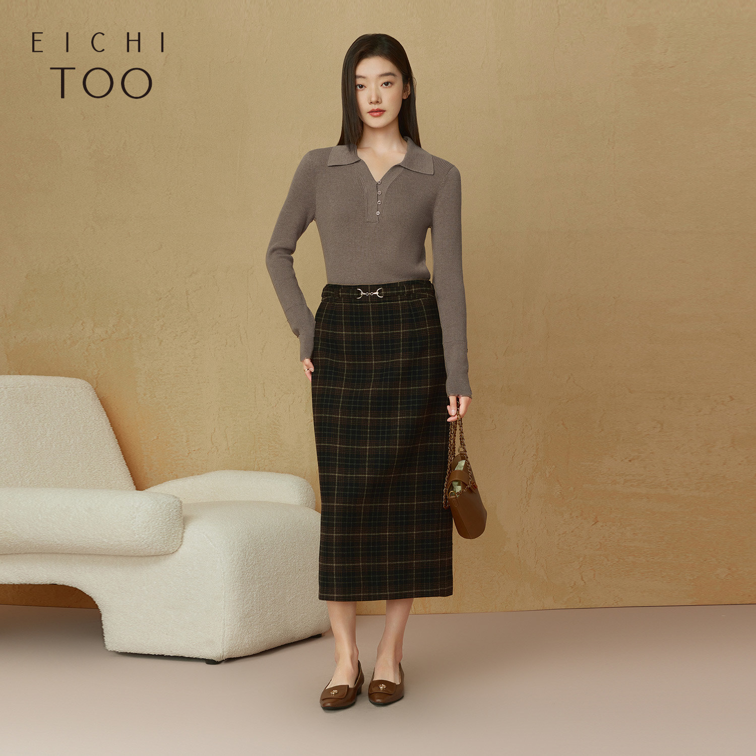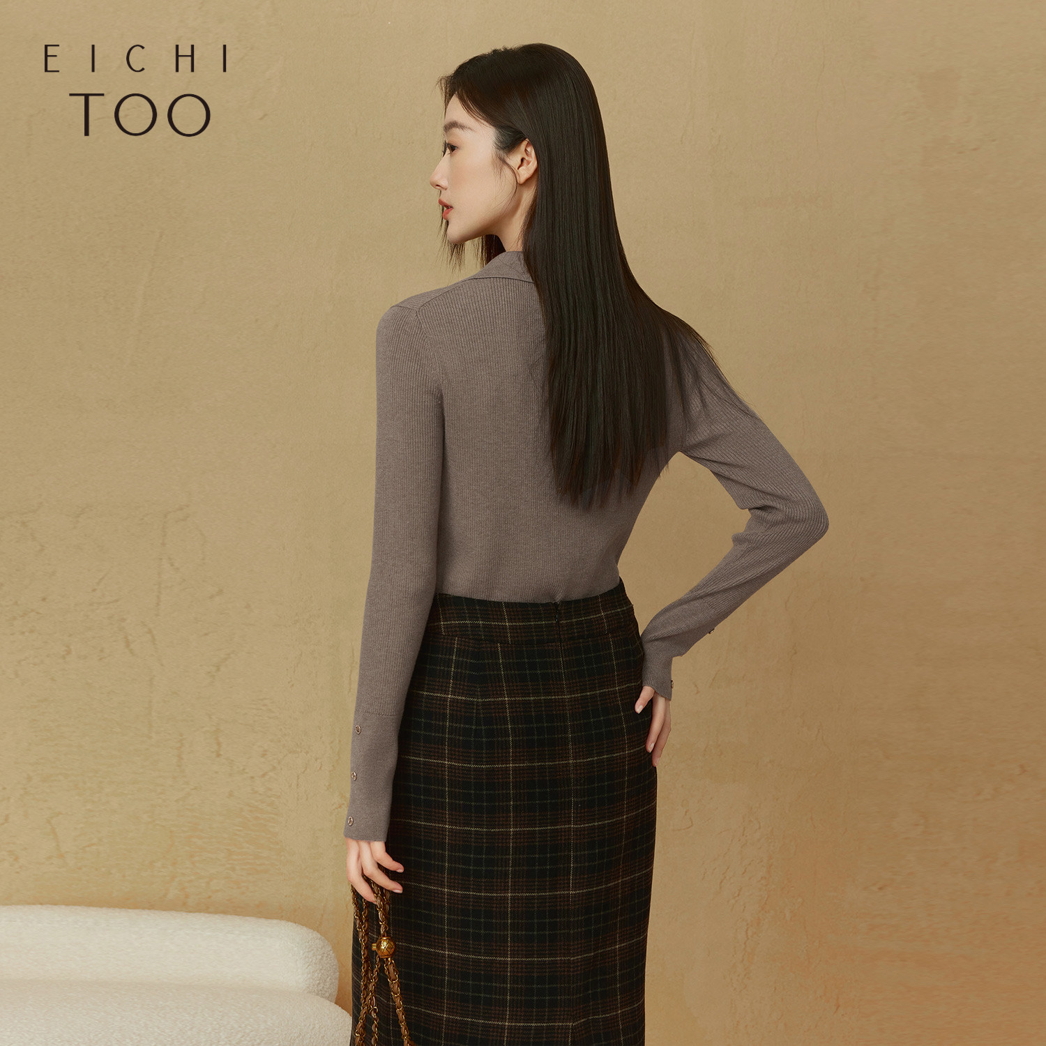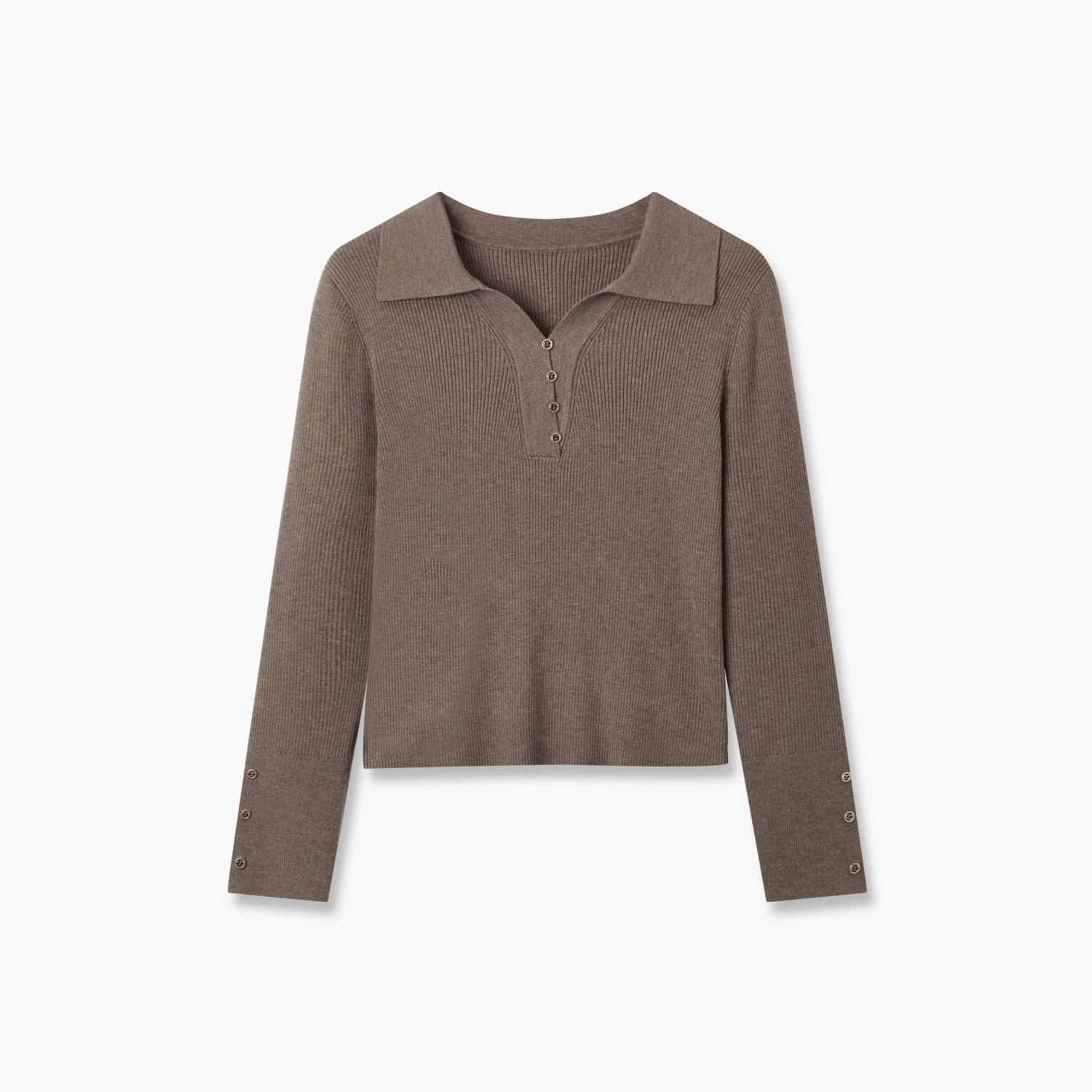 爱居兔纯色坑条针织衫女春秋新款polo领长袖套头上衣打底衫
