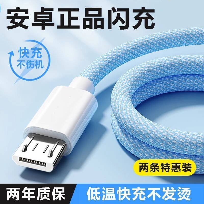 安卓数据线老款适用编织款闪充华为vivo小米oppo荣耀红米三星魅族快充4A充电器线micro手机充电宝风扇通用usb