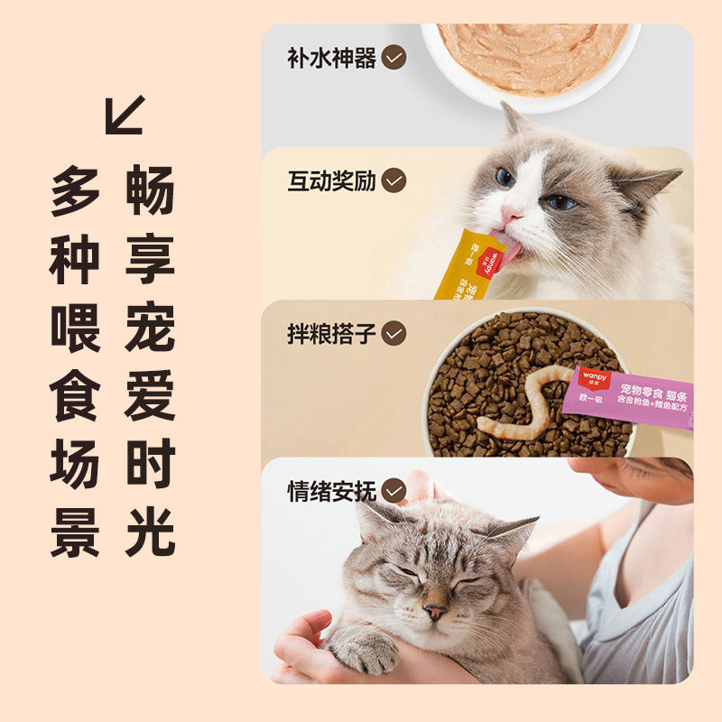 Wanpy顽皮欧一吸猫条猫咪零食猫湿粮营养补水鸡肉狩猎滋补三文鱼