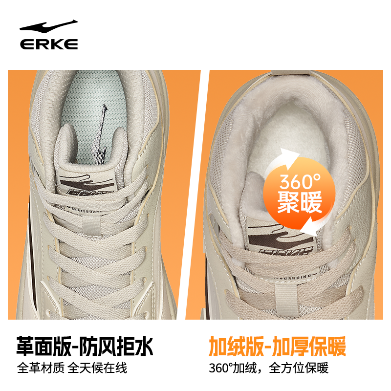 鸿星尔克板鞋男鞋冬季加绒加厚棉鞋男士鞋子百搭休闲鞋高帮运动鞋